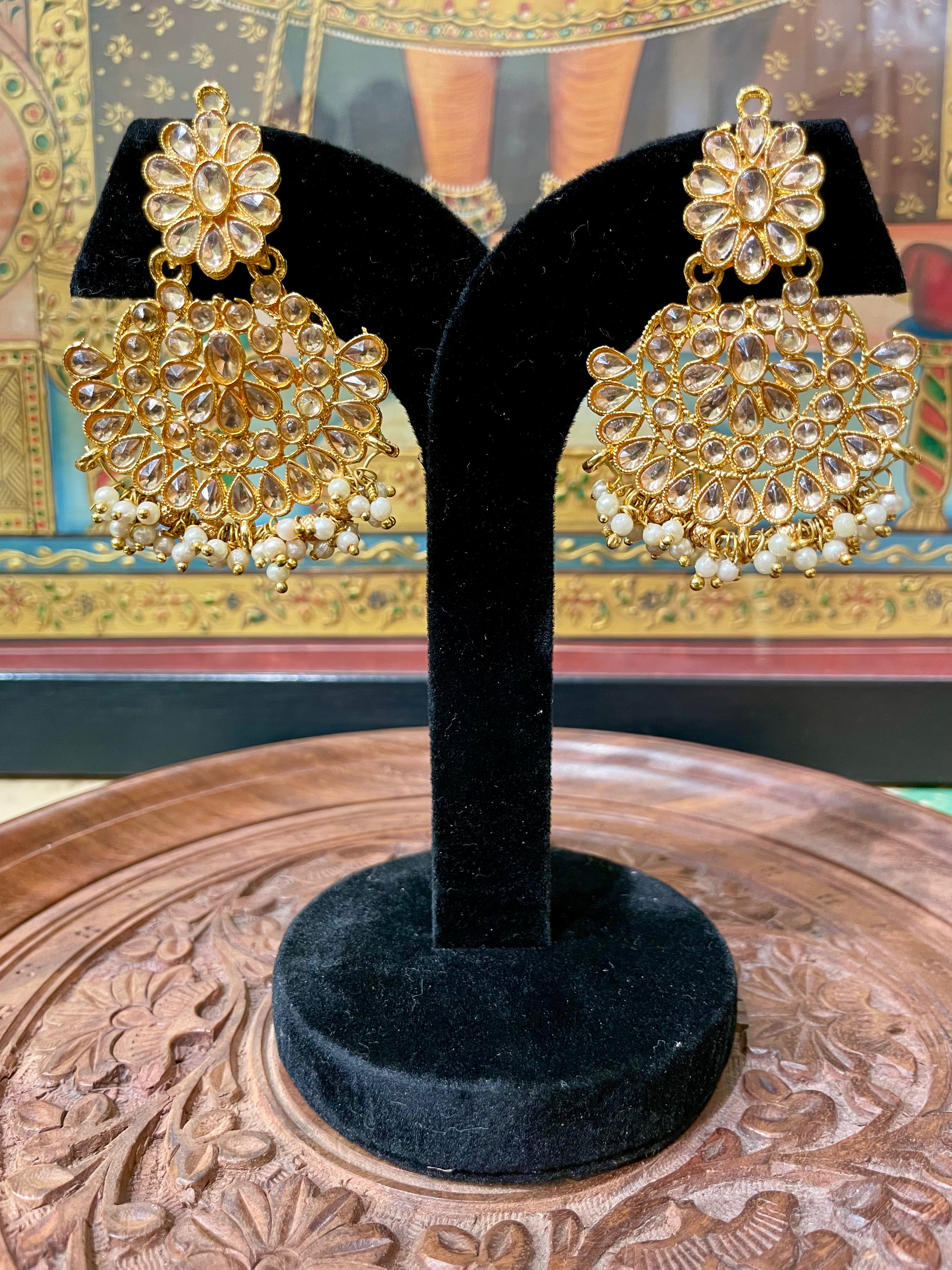 GOLD TONED TRADITIONAL POLKI EARRINGS