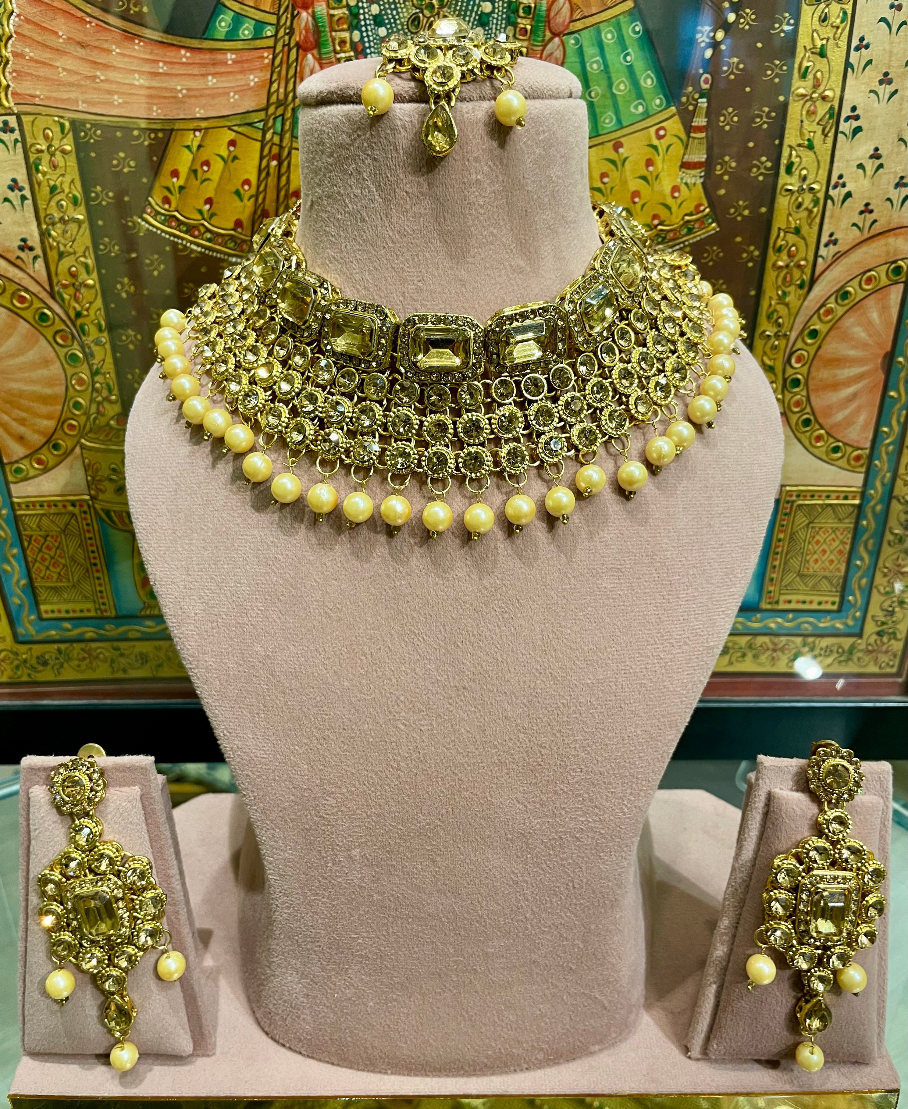 GOLD TONED BRIDAL POLKI NECKLACE SET