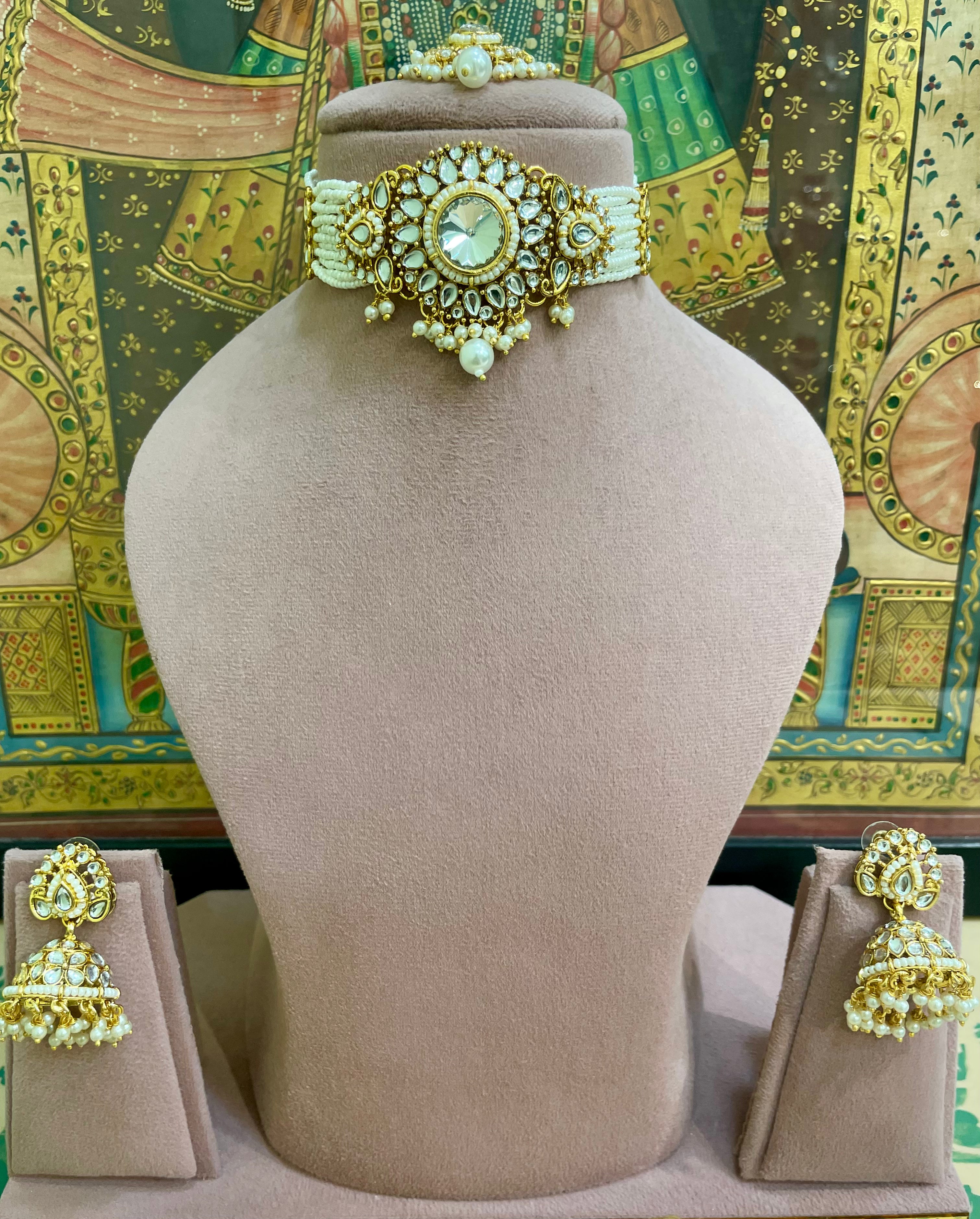 IVORY WHITE KUNDAN PEARL ROYAL CHOKER SET