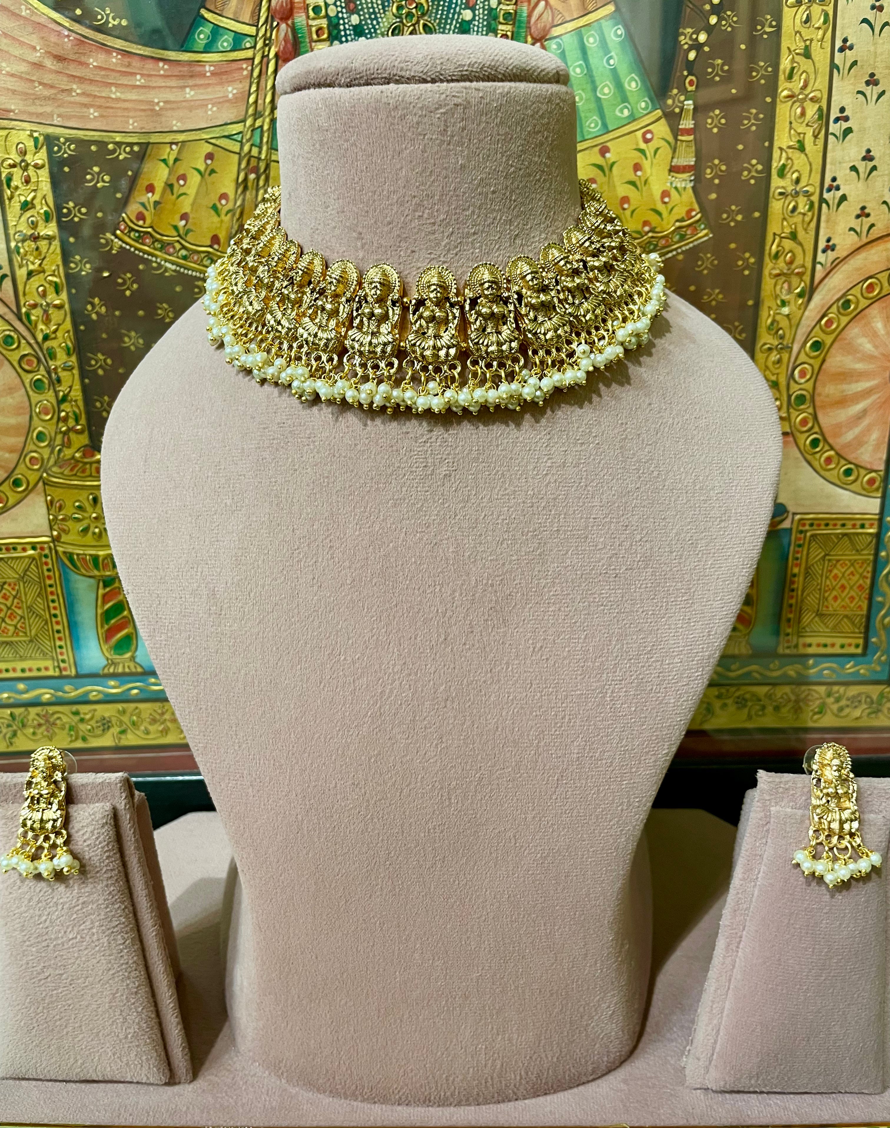 MA LAXMI GOLD PLATED PEARL TRADITIONAL SOUTH INDIAN SET
