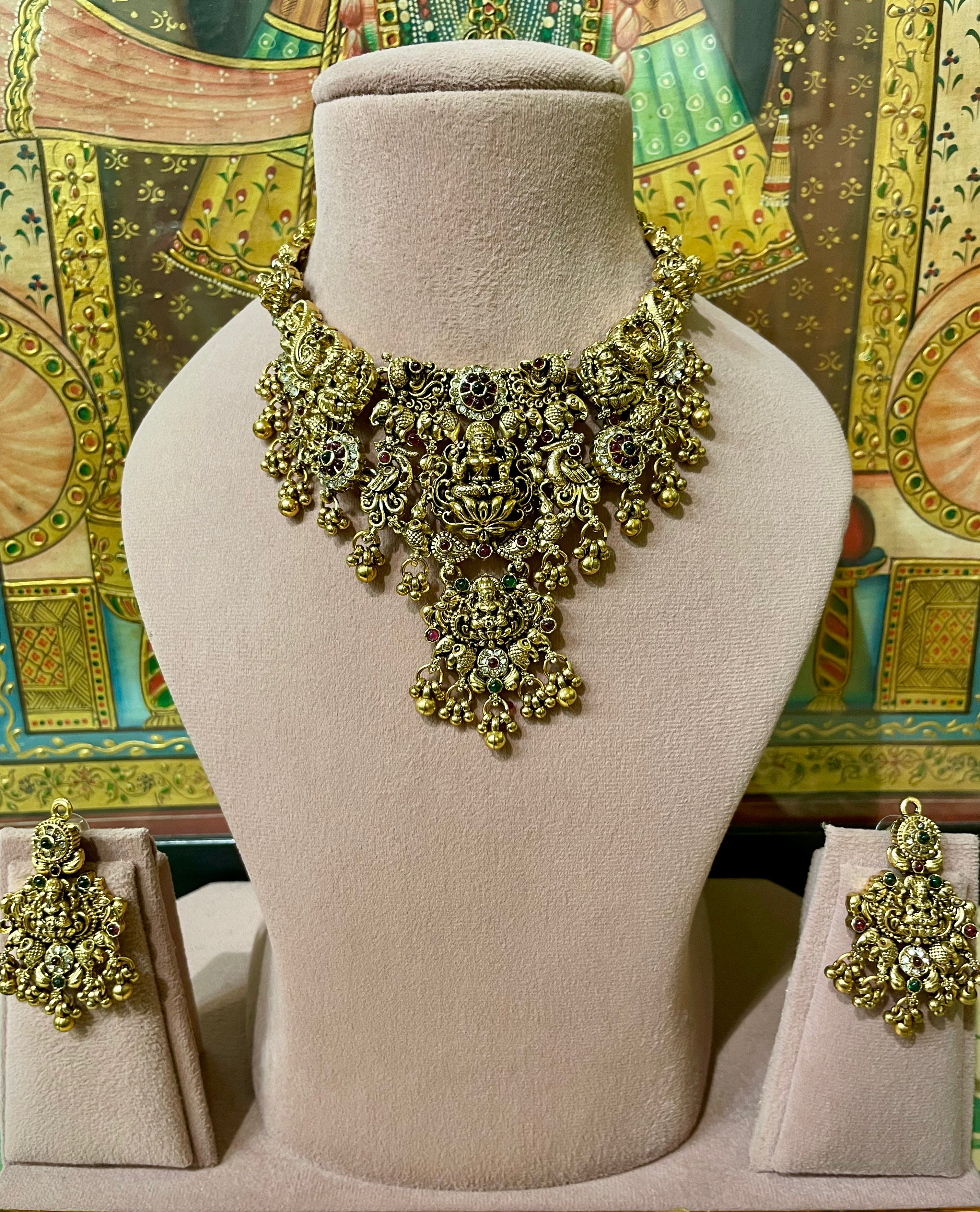 MA LAXMI TRADITIONAL SOUTH INDIAN ANTIQUE BRIDAL NECKLACE SET