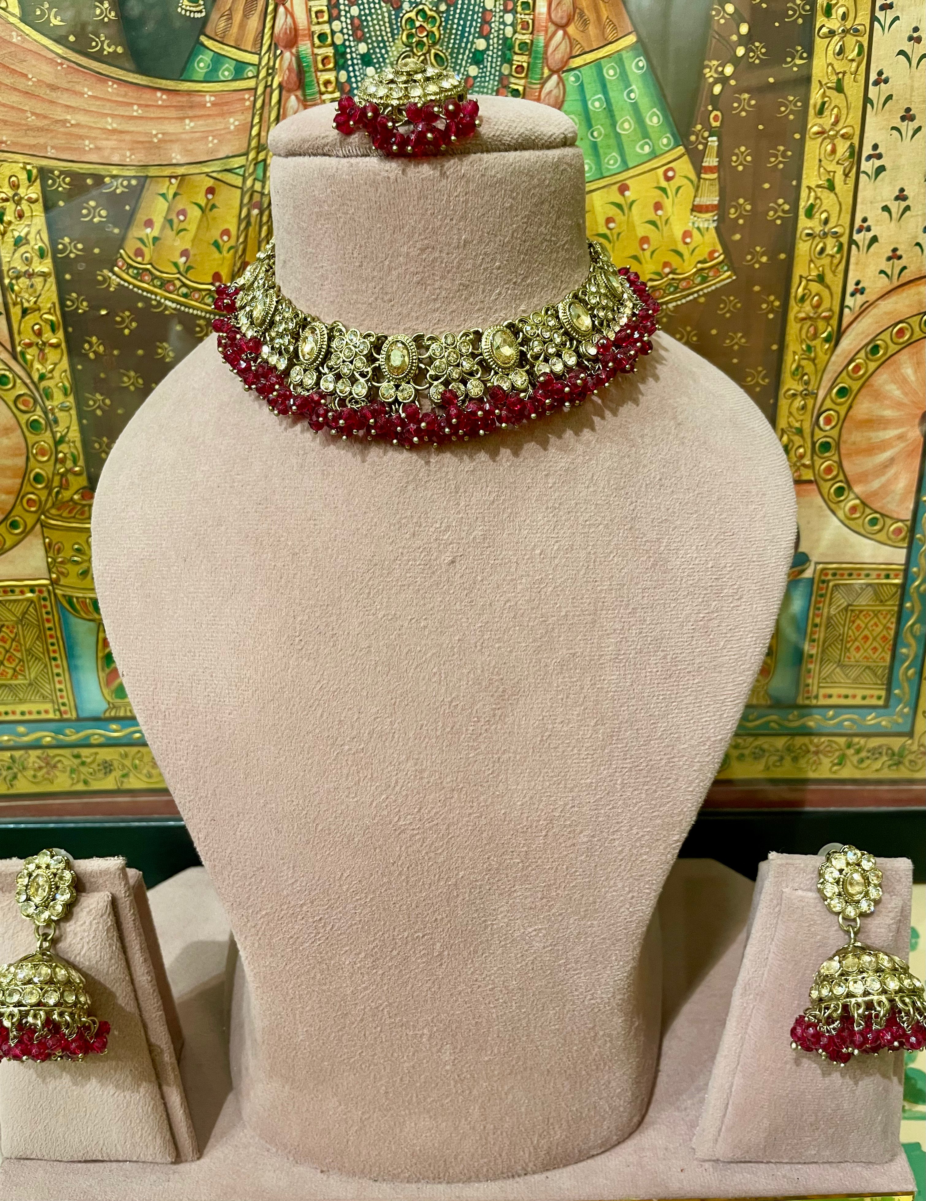 MAROON GOLD TONED LIGHT NECKLACE SET