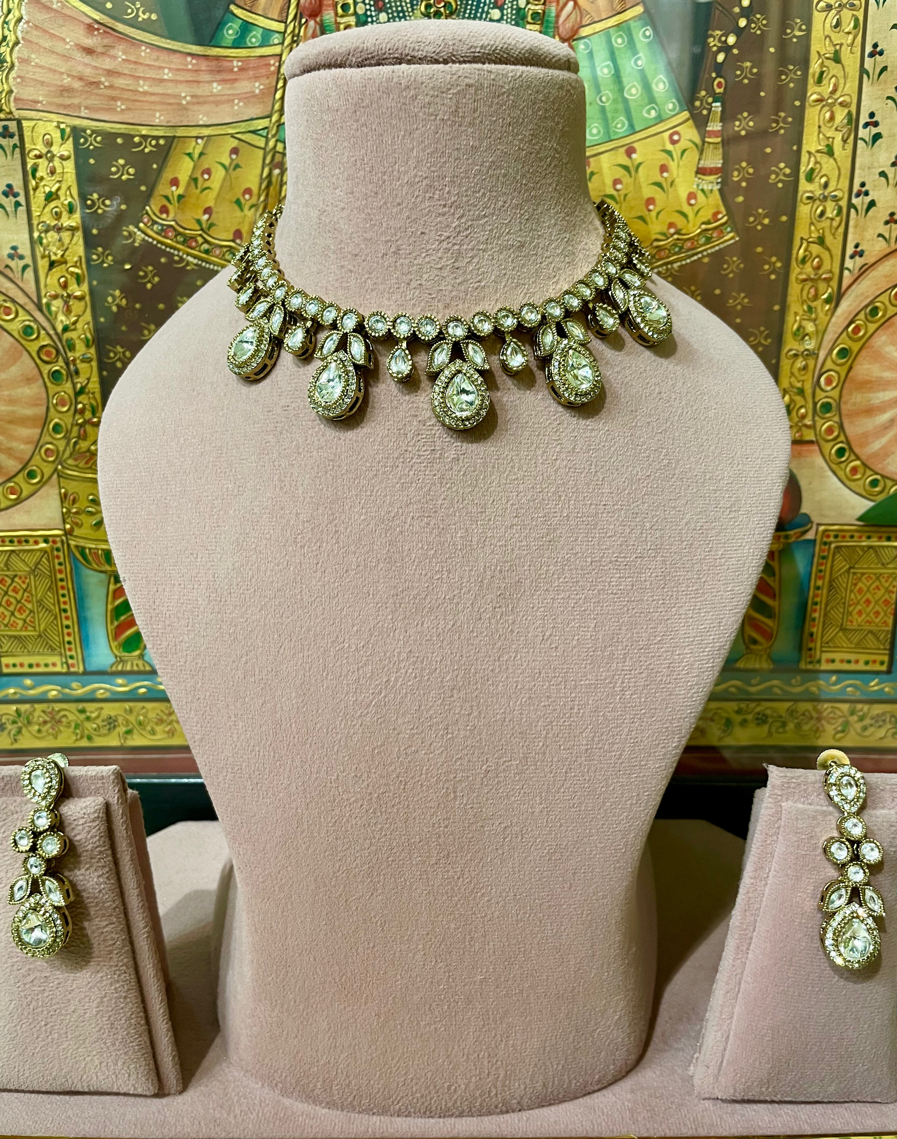 NEUTRAL KUNDAN MOISSANITE MONALISA SLEEK NECKLACE SET