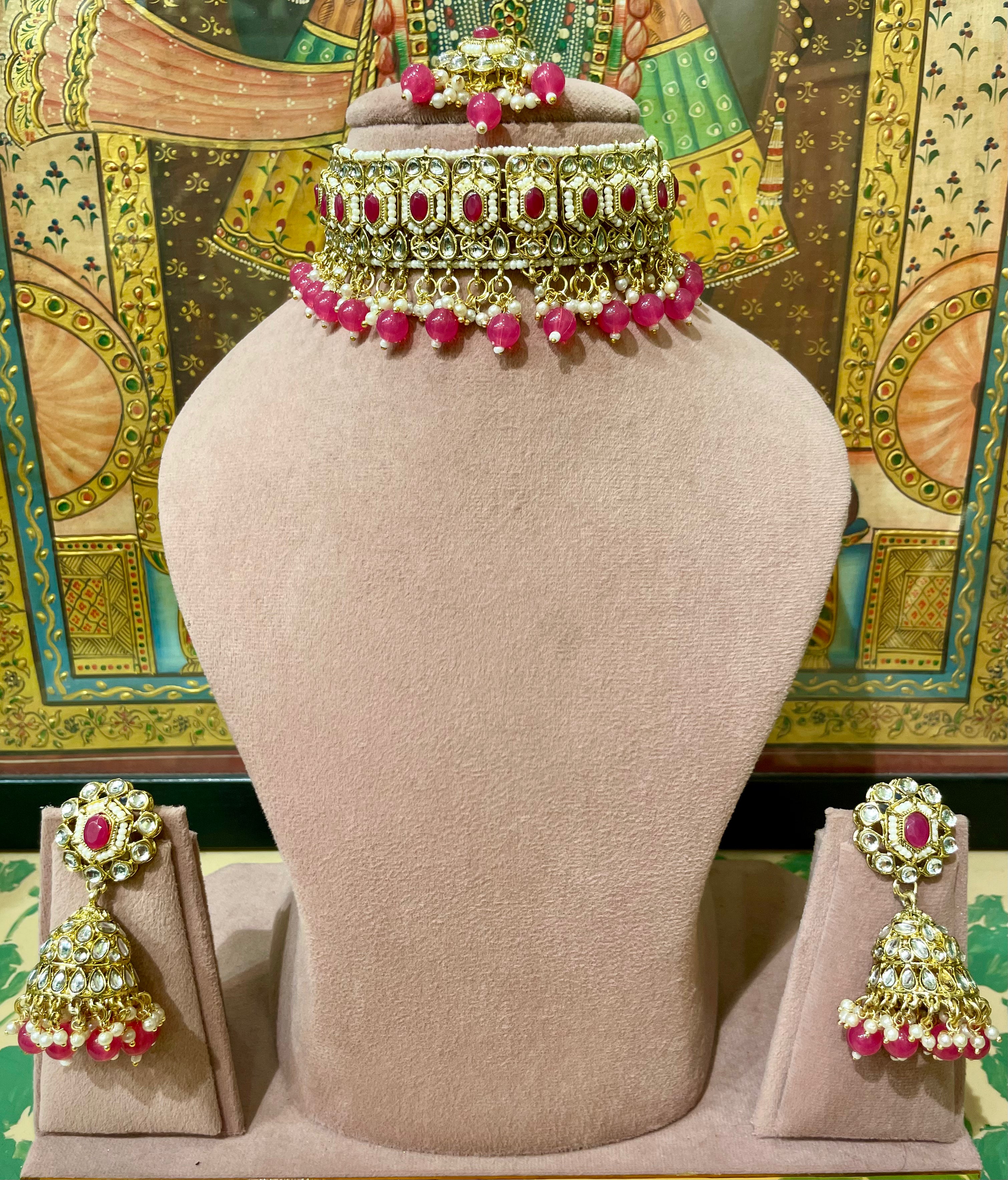 POLKI FUCHSIA PINK CHOKER NECKLACE SET