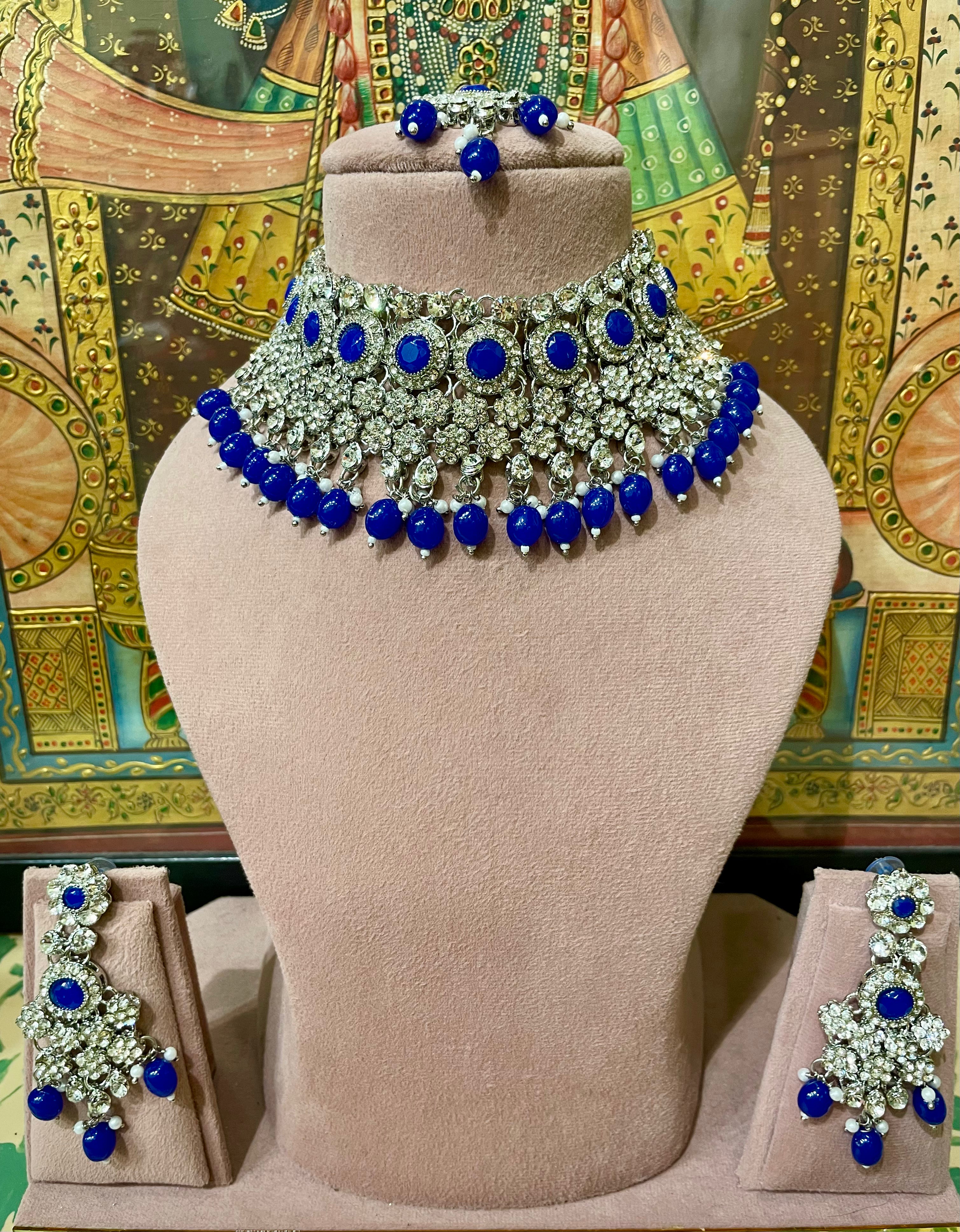 ROYAL BLUE AMERICAN DIAMOND (AD) POLKI NECKLACE SET