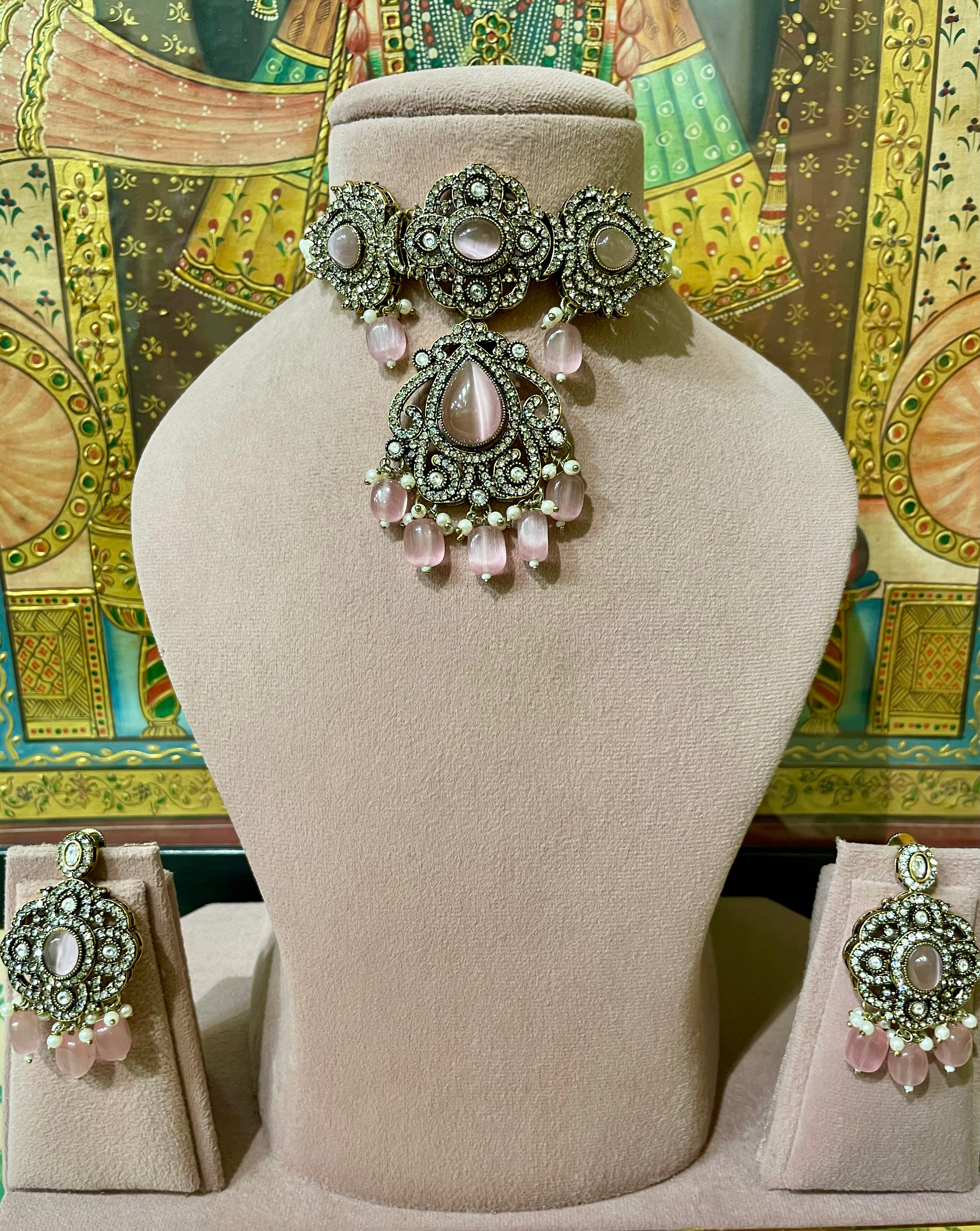 SOFT PINK KUNDAN MOISSANITE VICTORIAN CHOKER SET