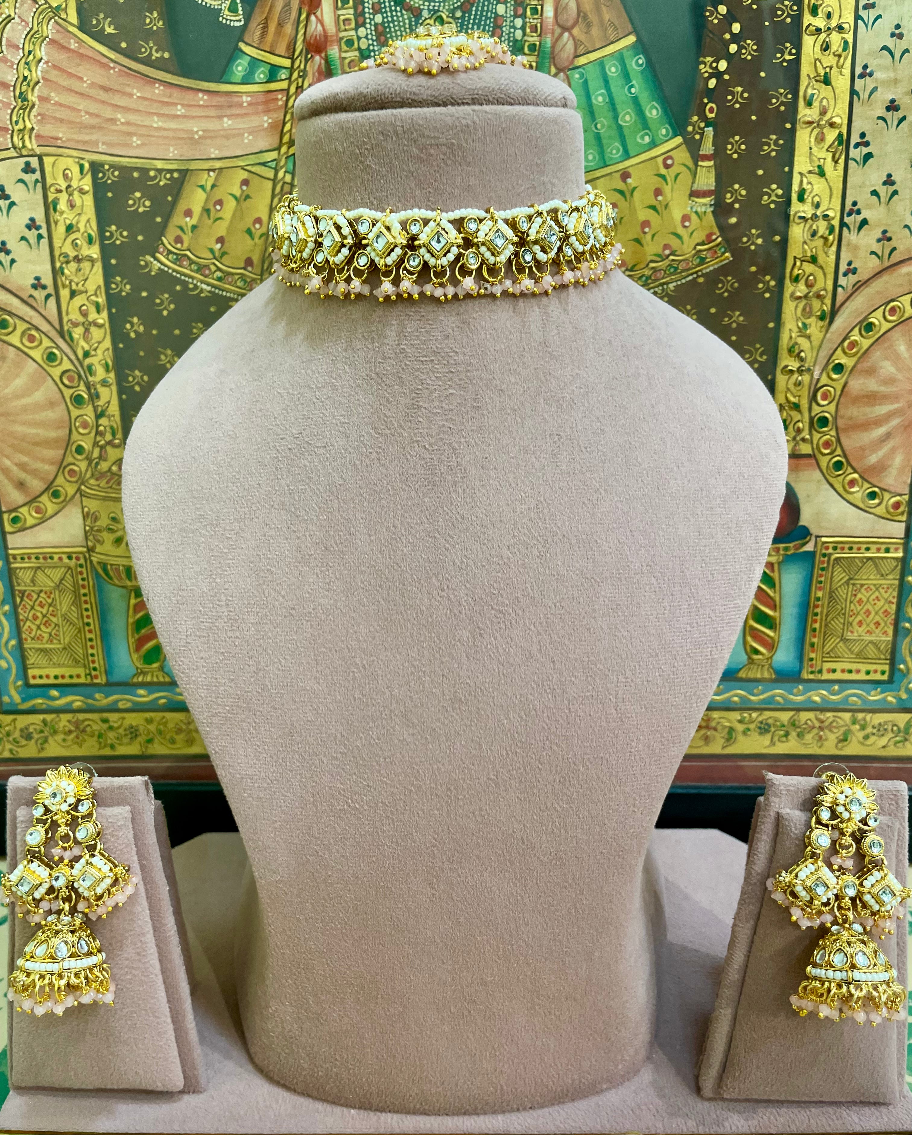 SOFT PINK KUNDAN PEARL GOLD PLATED JHUMKA CHOKER SET