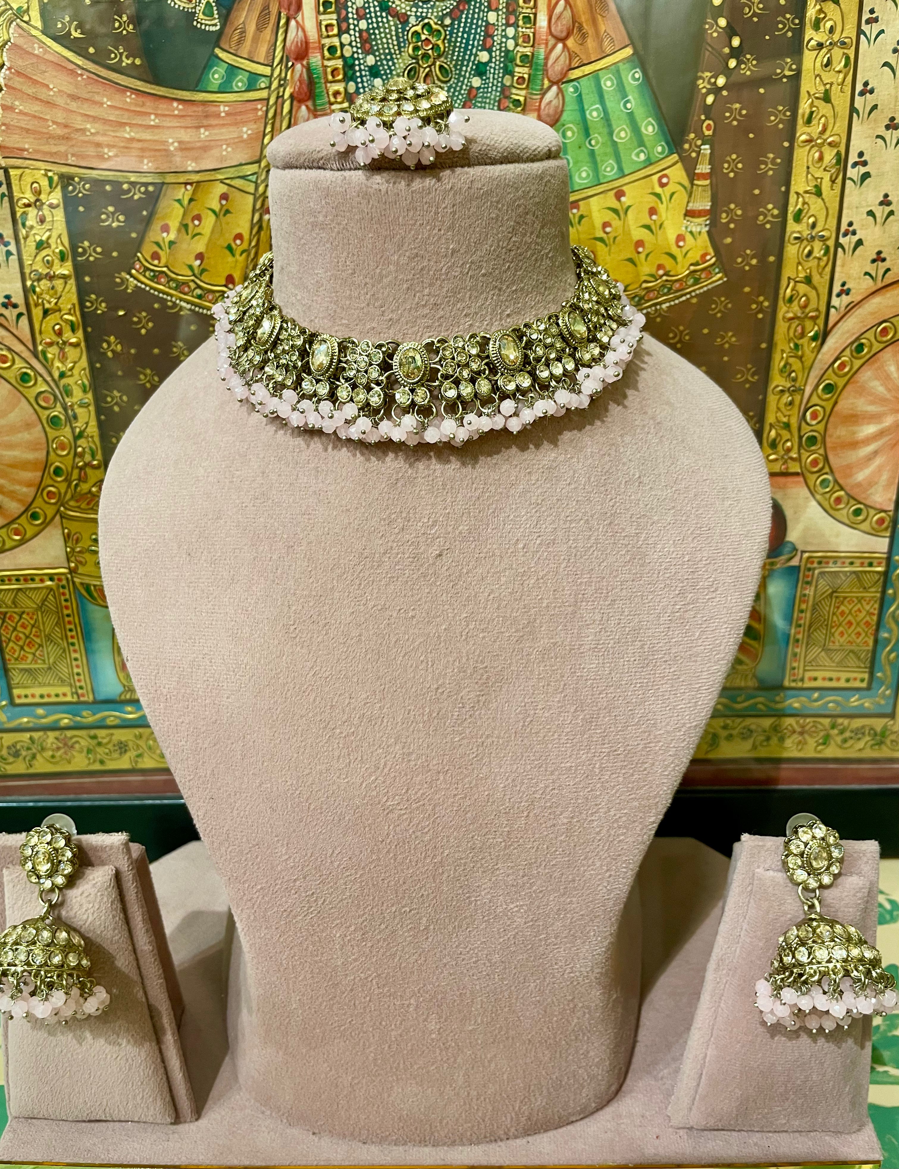 SOFT PINK GOLD TONED LIGHT NECKLACE SET
