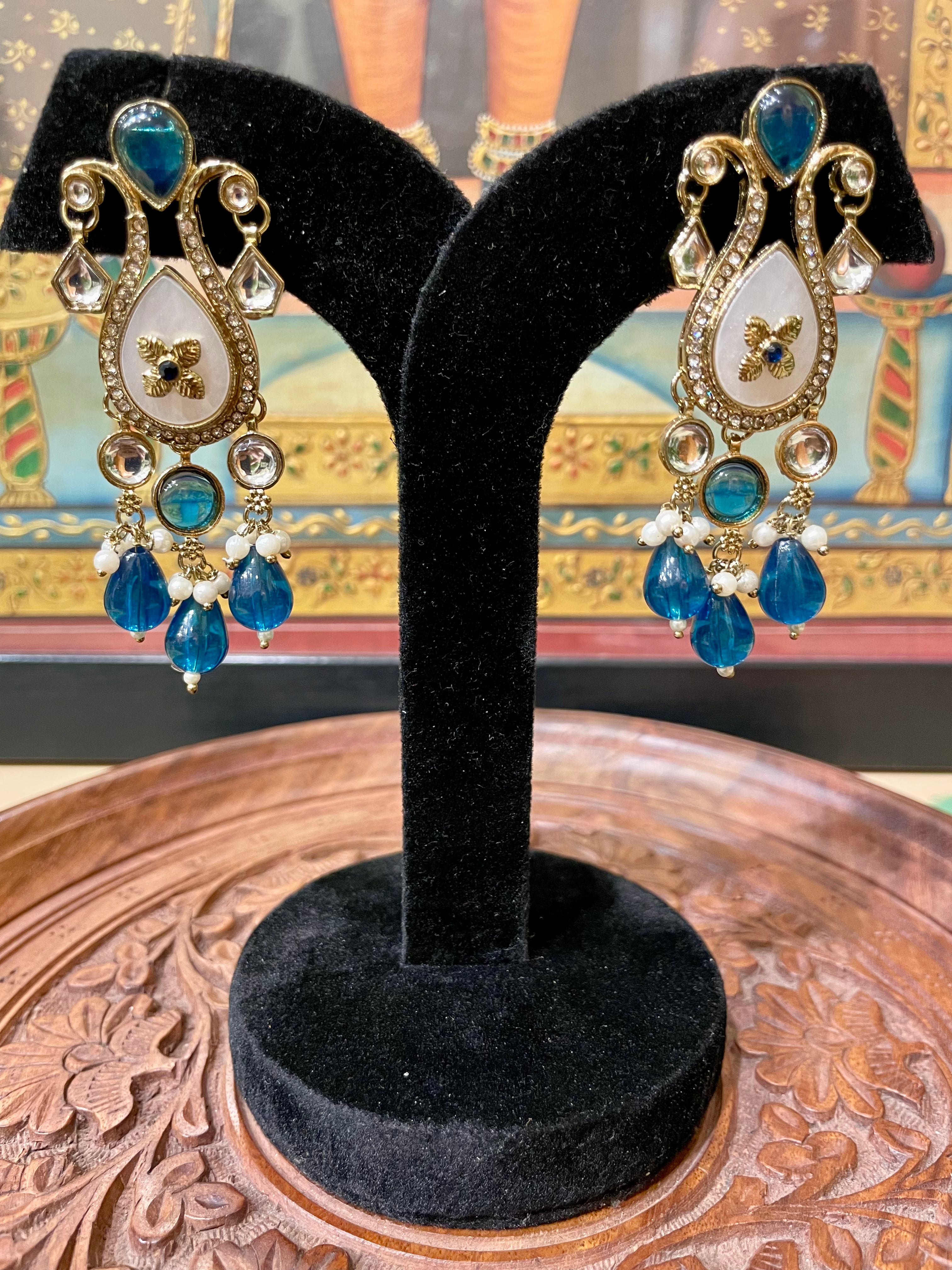 DARK BLUE KUNDAN POLKI DANGLER EARRINGS