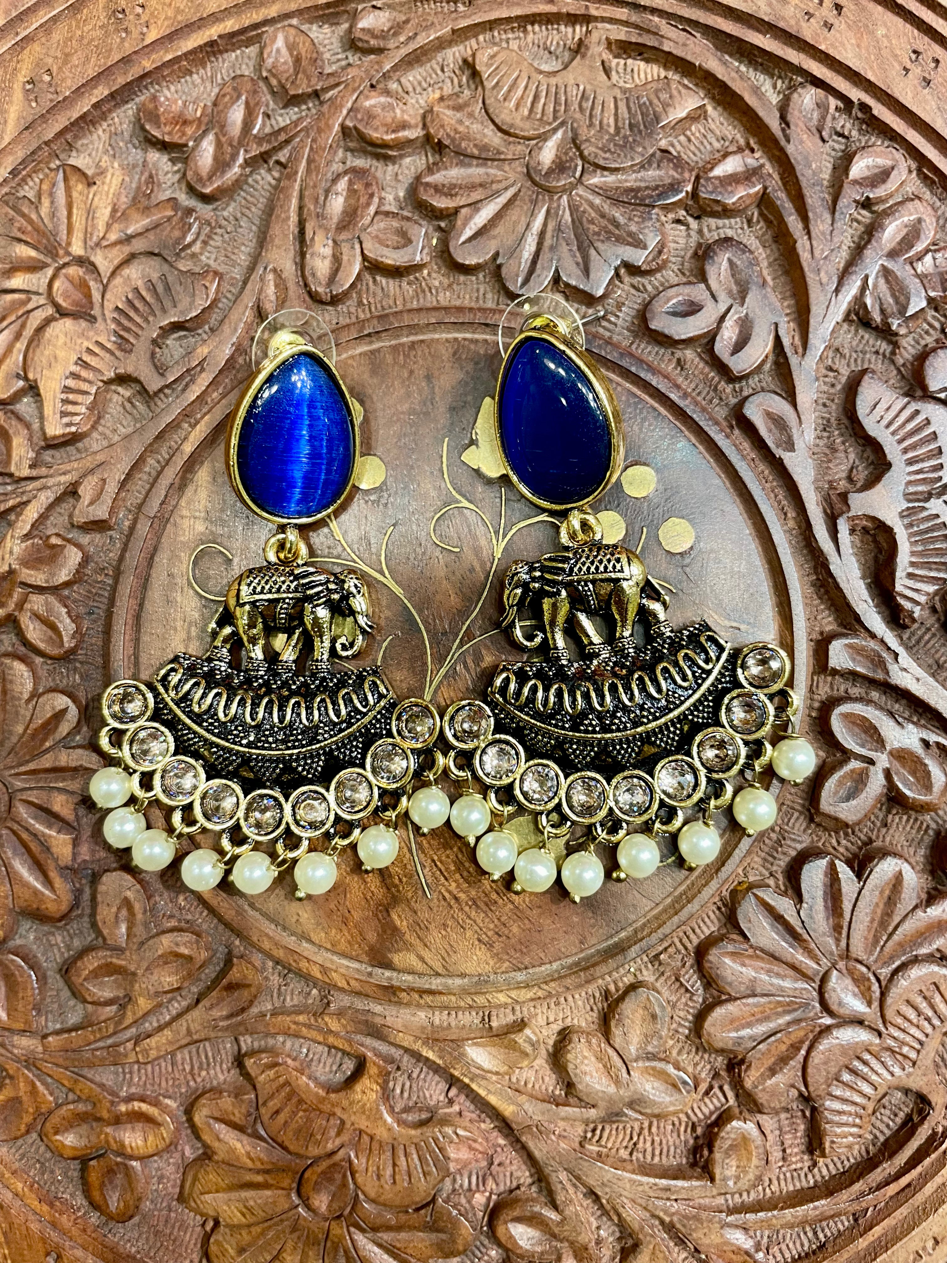 DARK BLUE MONALISA STONE VINTAGE PEARL EARRINGS