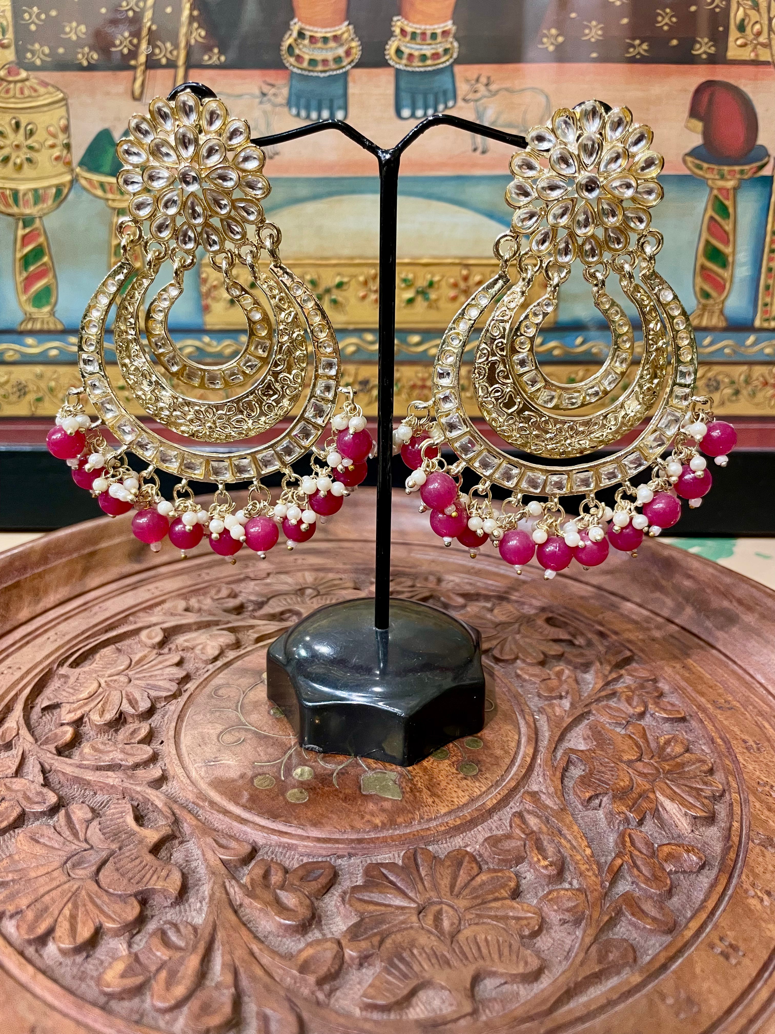 DARK PINK CHANDBALI ETHNIC DESIGN EARRINGS