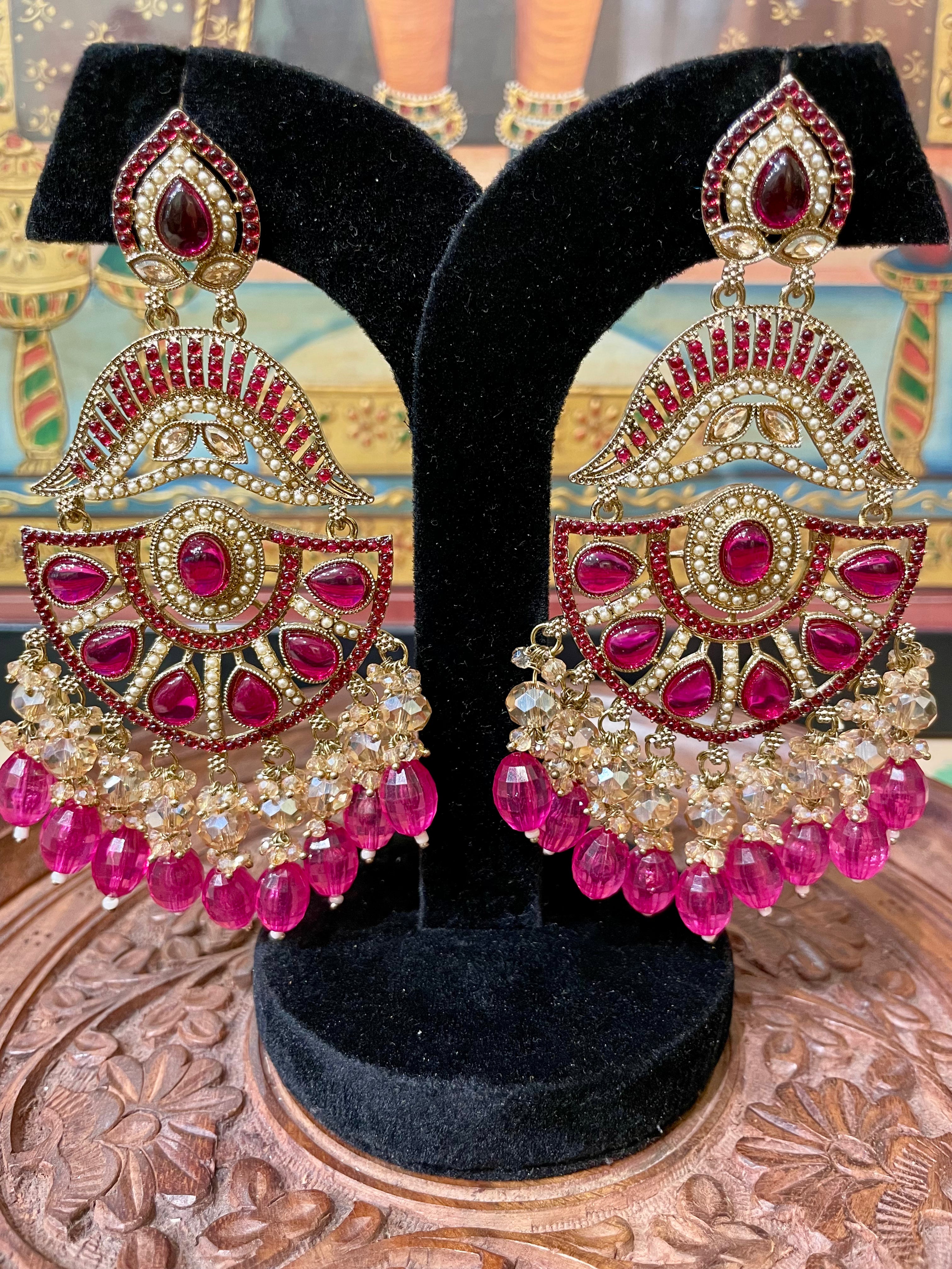 DARK PINK ETHNIC CHANDBALI DESIGNER EARRINGS