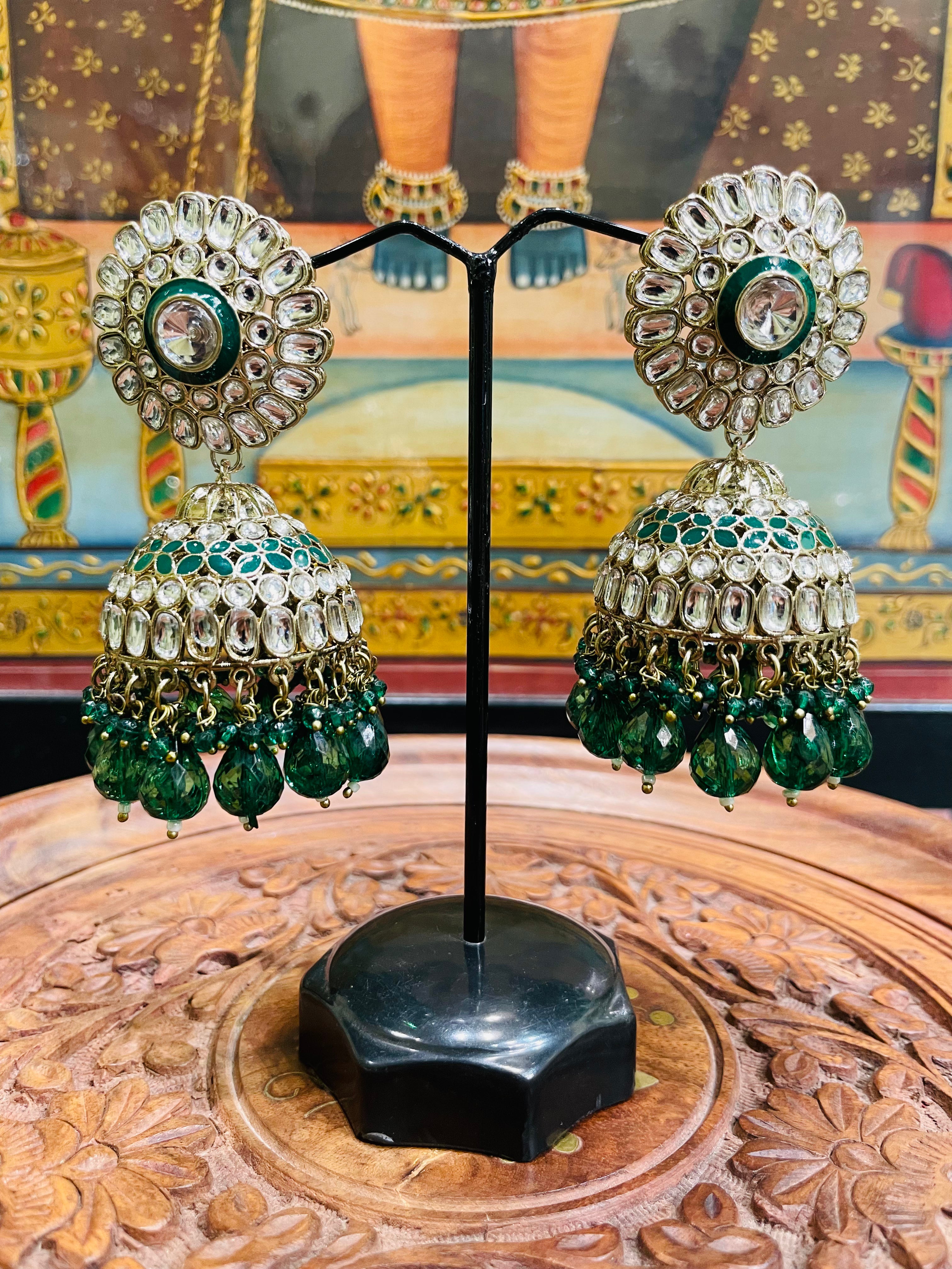 GREEN POLKI JHUMKI EARRINGS