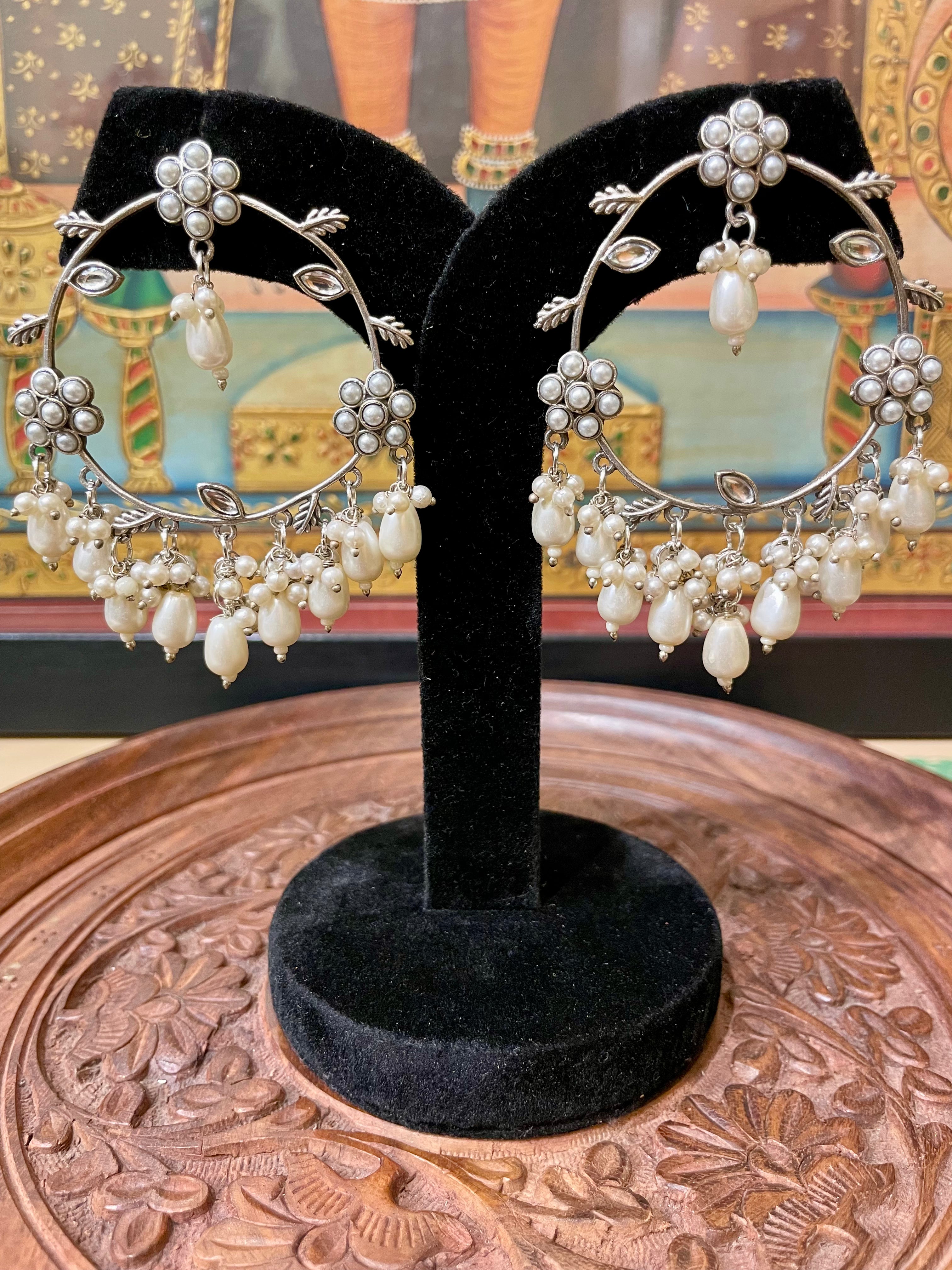 IVORY WHITE PEARL ROUND HOOP DANGLER EARRINGS