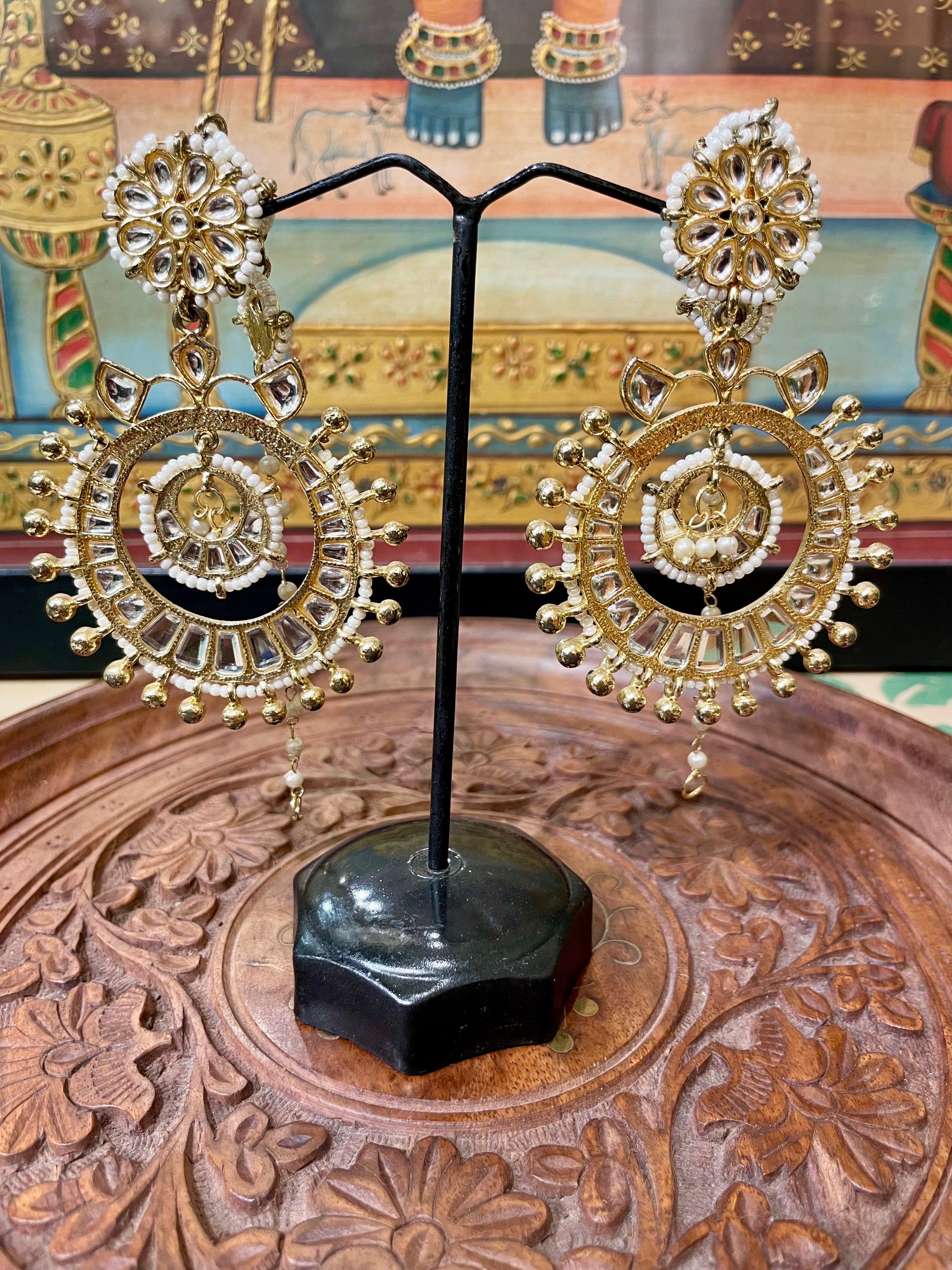 IVORY WHITE ROUND POLKI ETHNIC EARRINGS