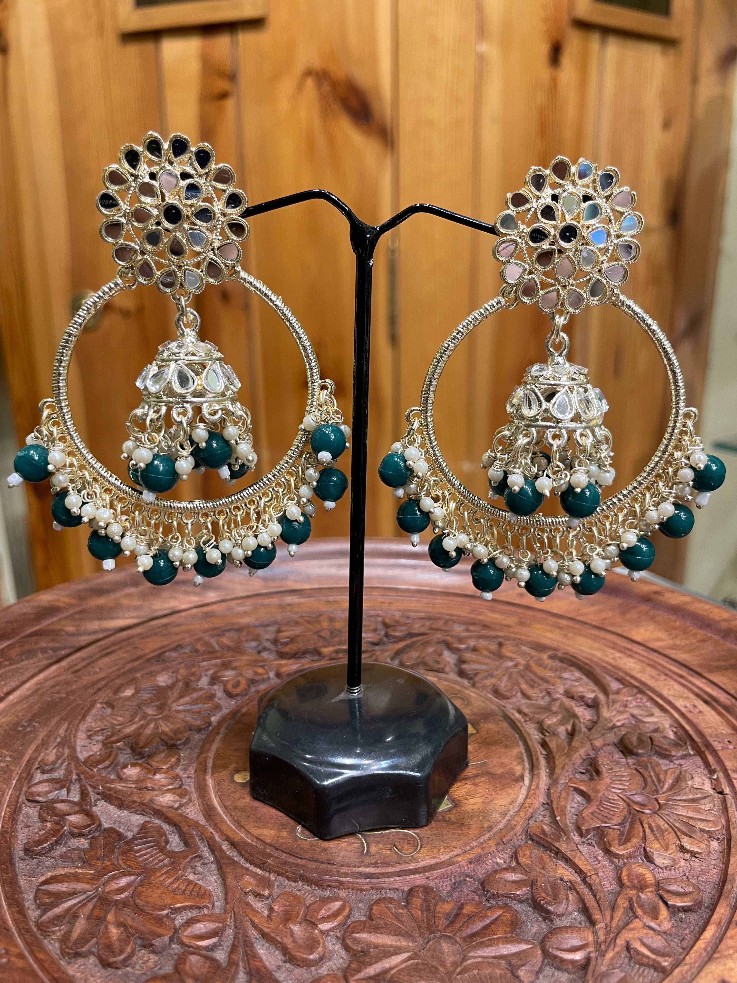 JHUMKI WITH HOOPS TRADITIONAL EARRINGS (GREEN)