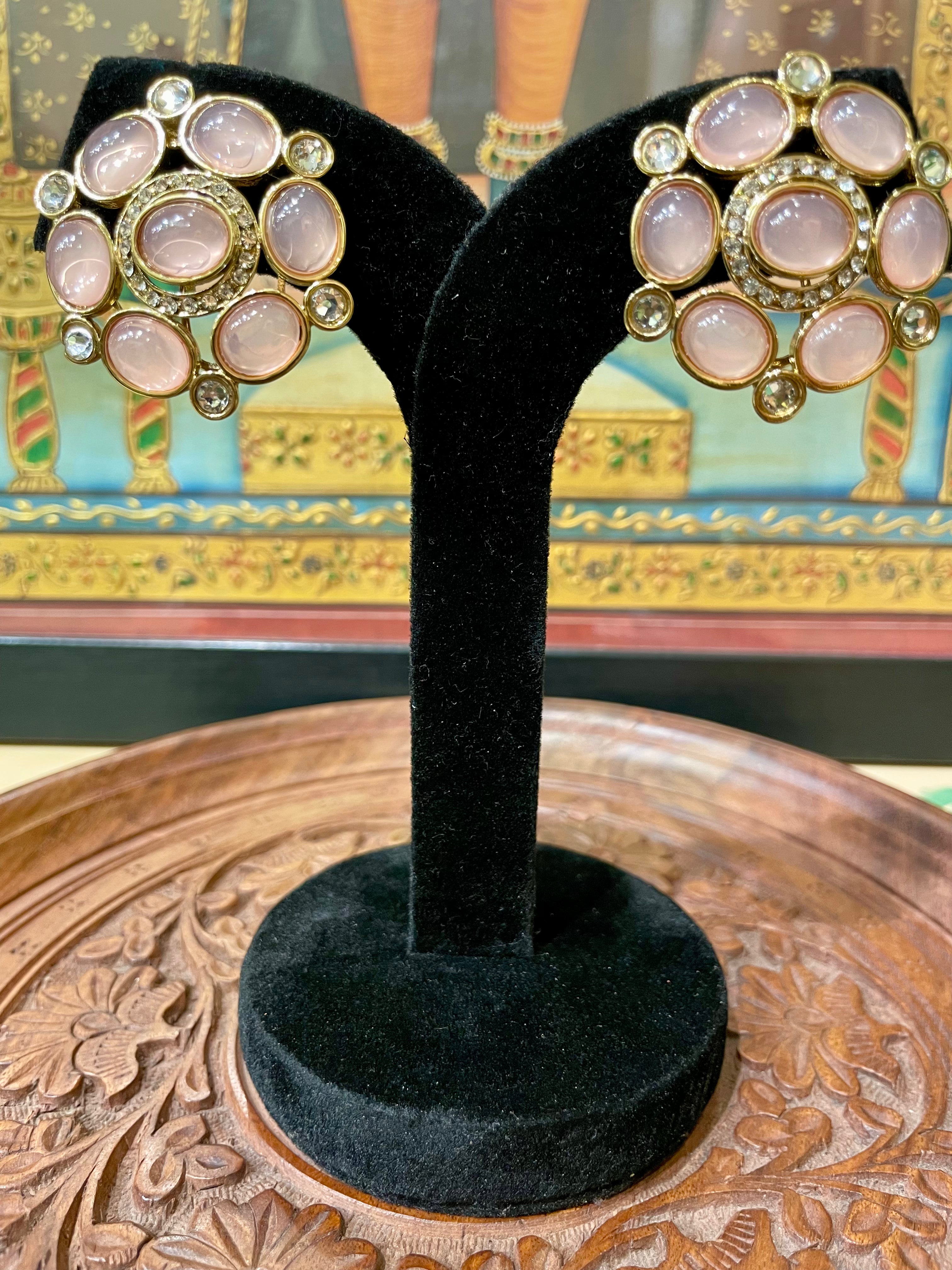 PINK ROUND MONALISA STONE STUD EARRINGS
