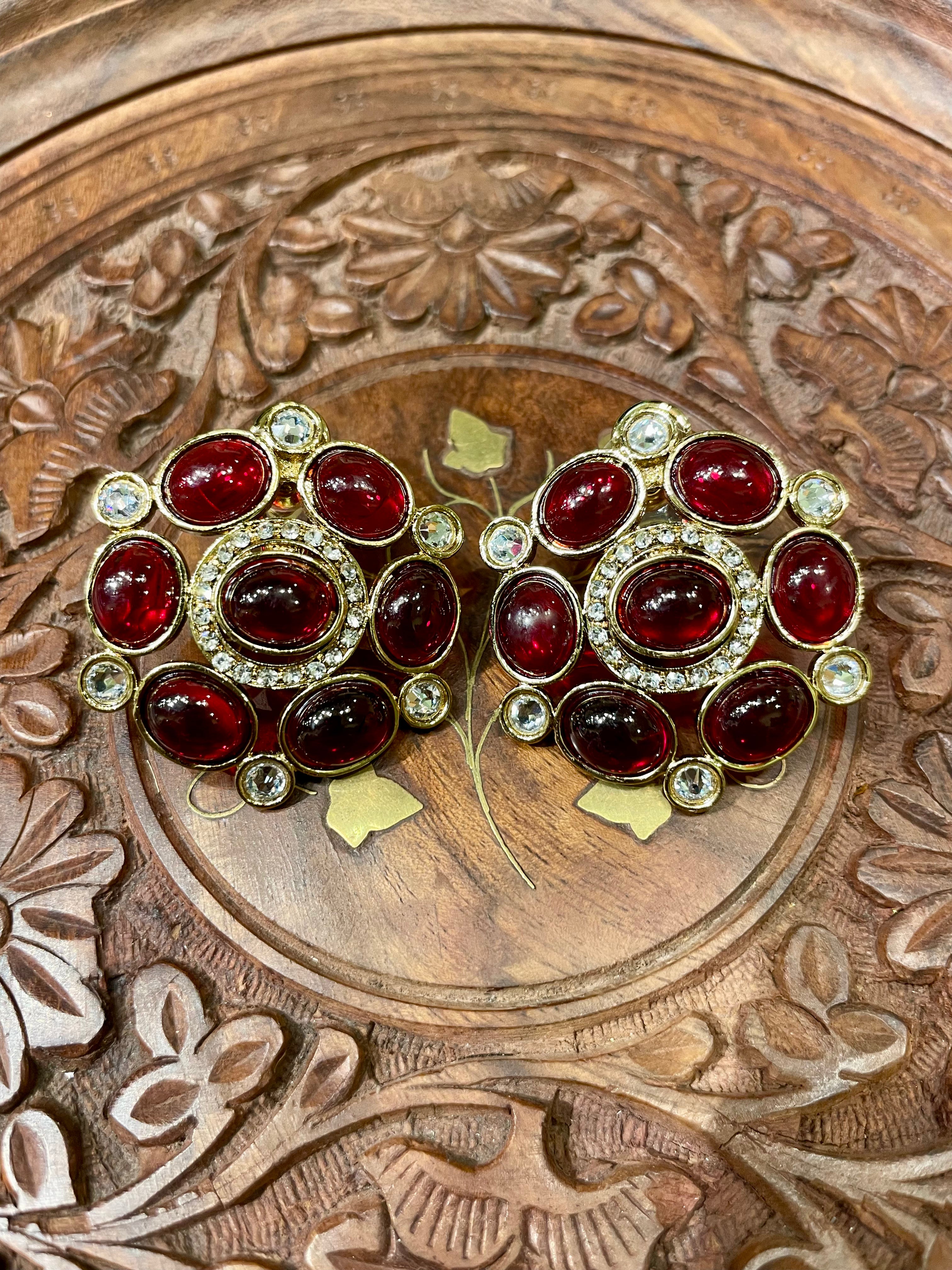 RUBY RED ROUND MONALISA STONE STUD EARRINGS