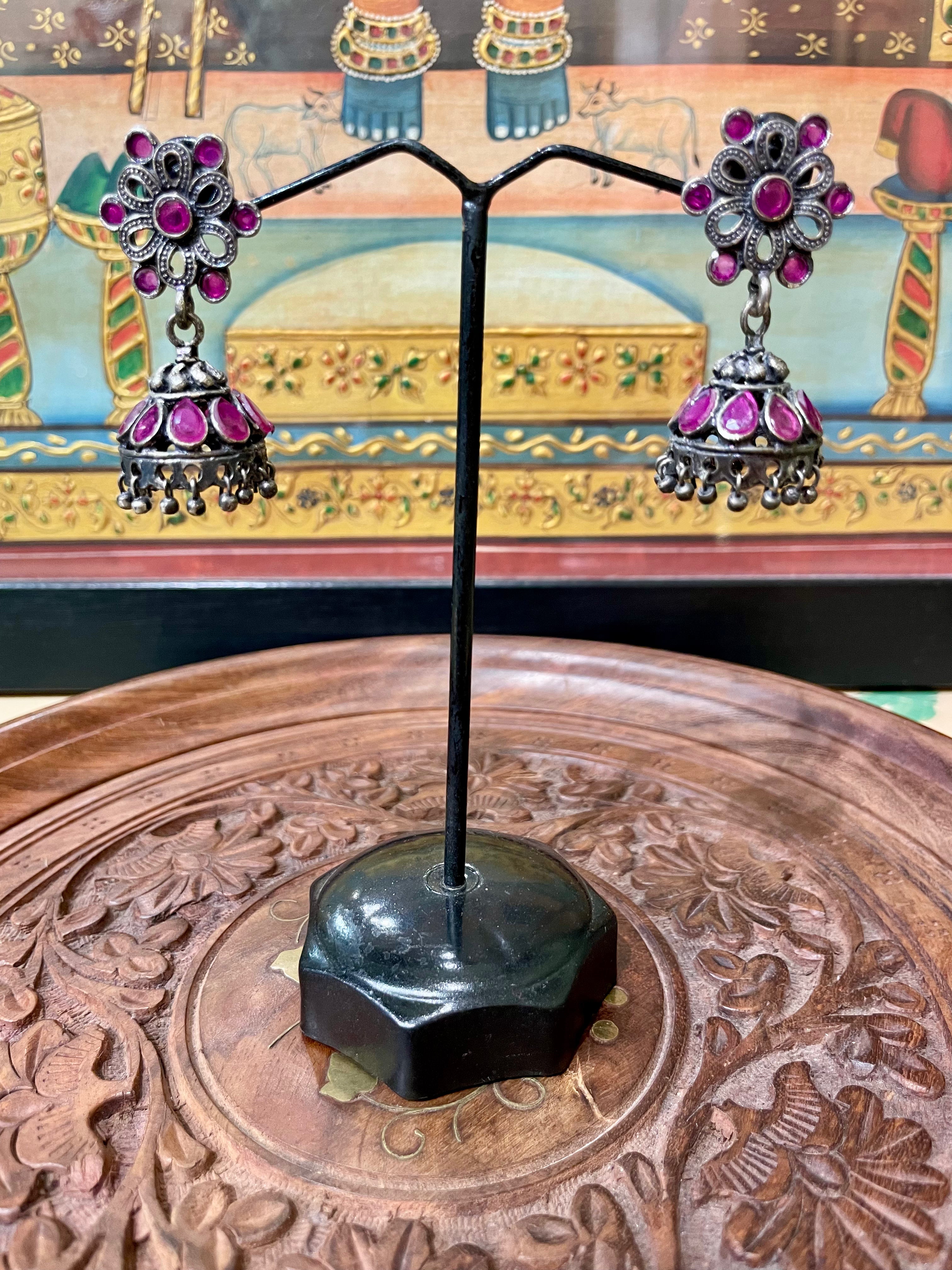 SILVER JHUMKI ETHNIC EARRINGS (MAROON)