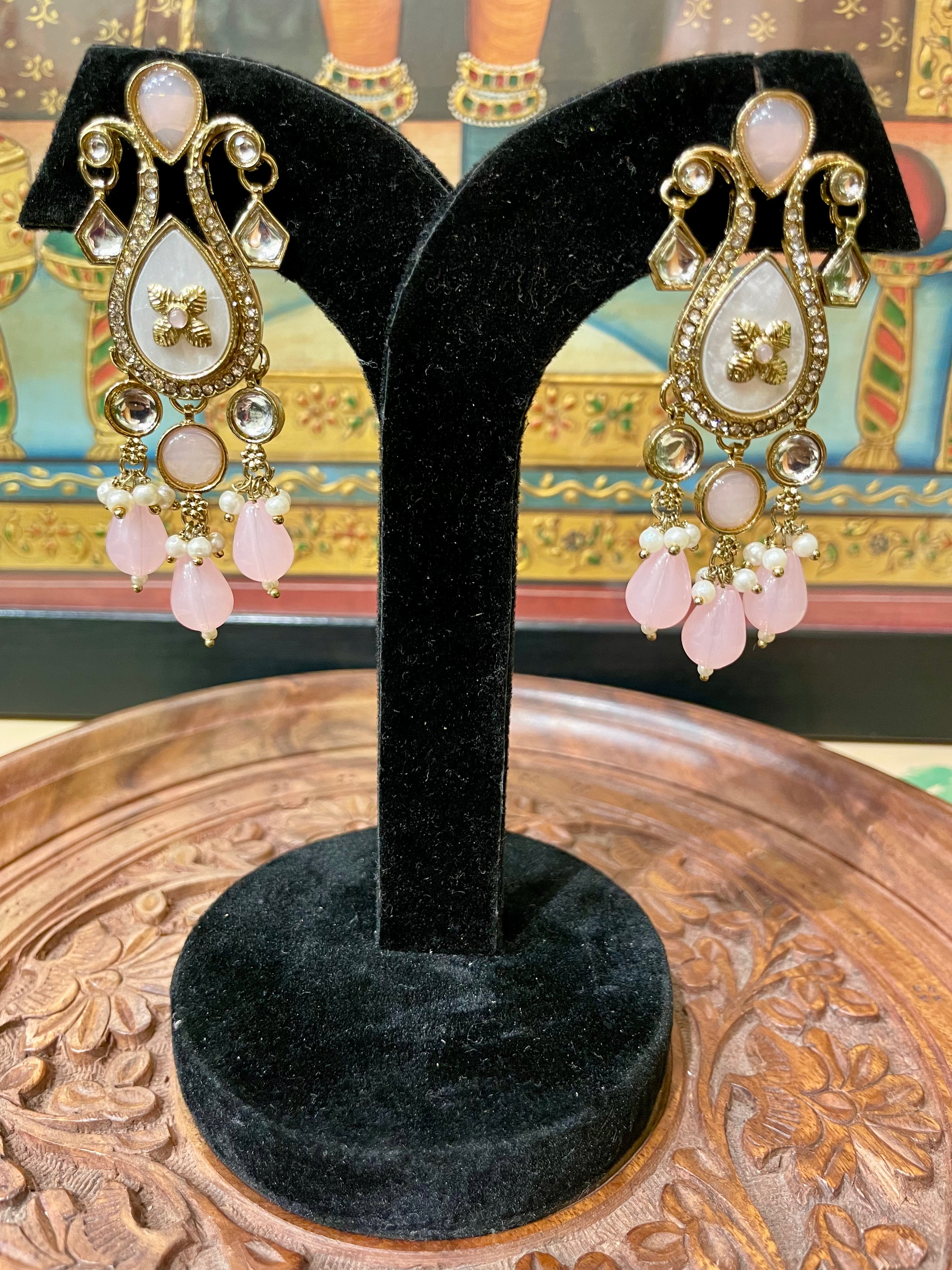 SOFT PINK KUNDAN POLKI DESIGNER DANGLER EARRINGS