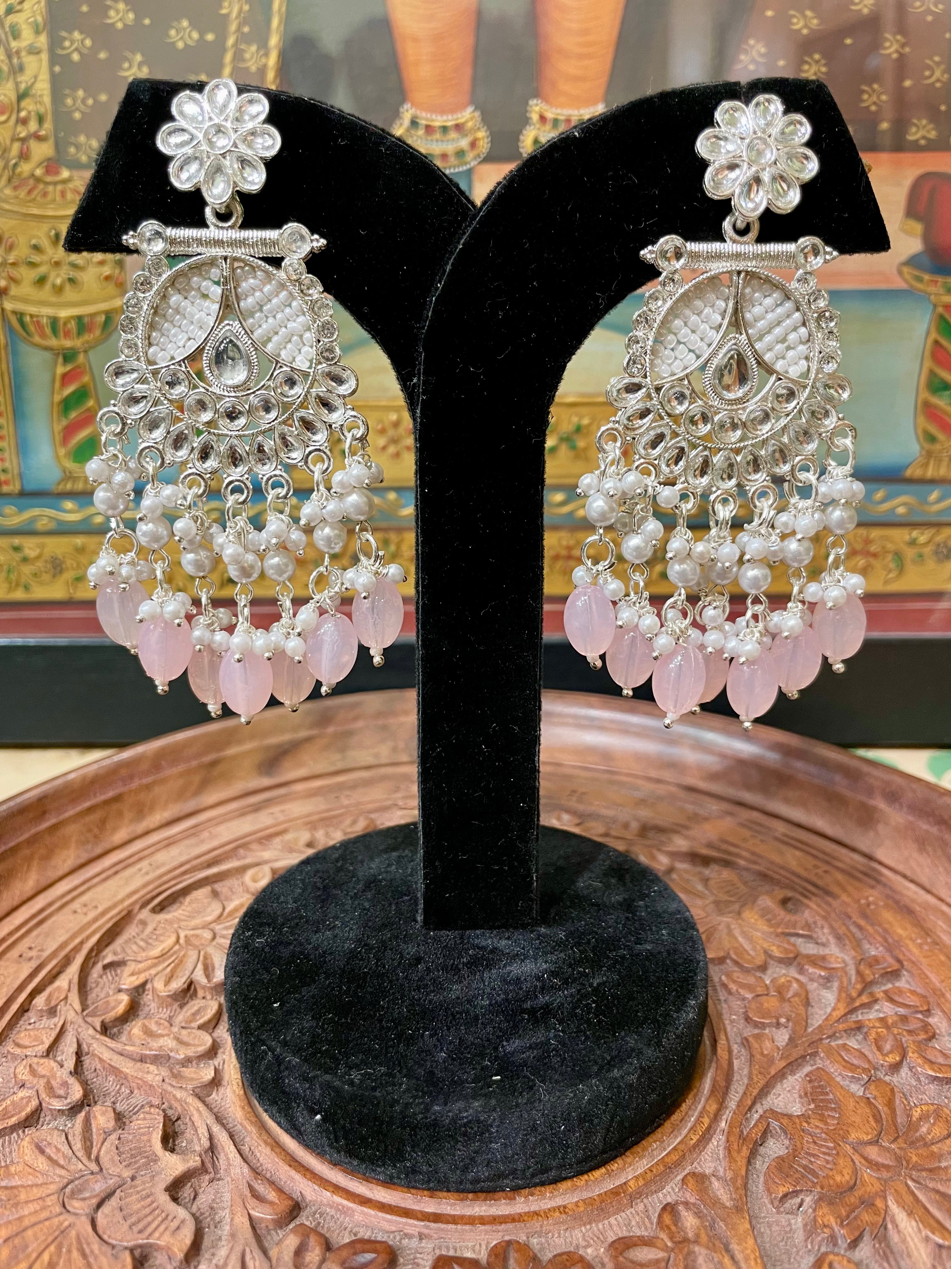 SOFT PINK POLKI DESIGNER DANGLER EARRINGS