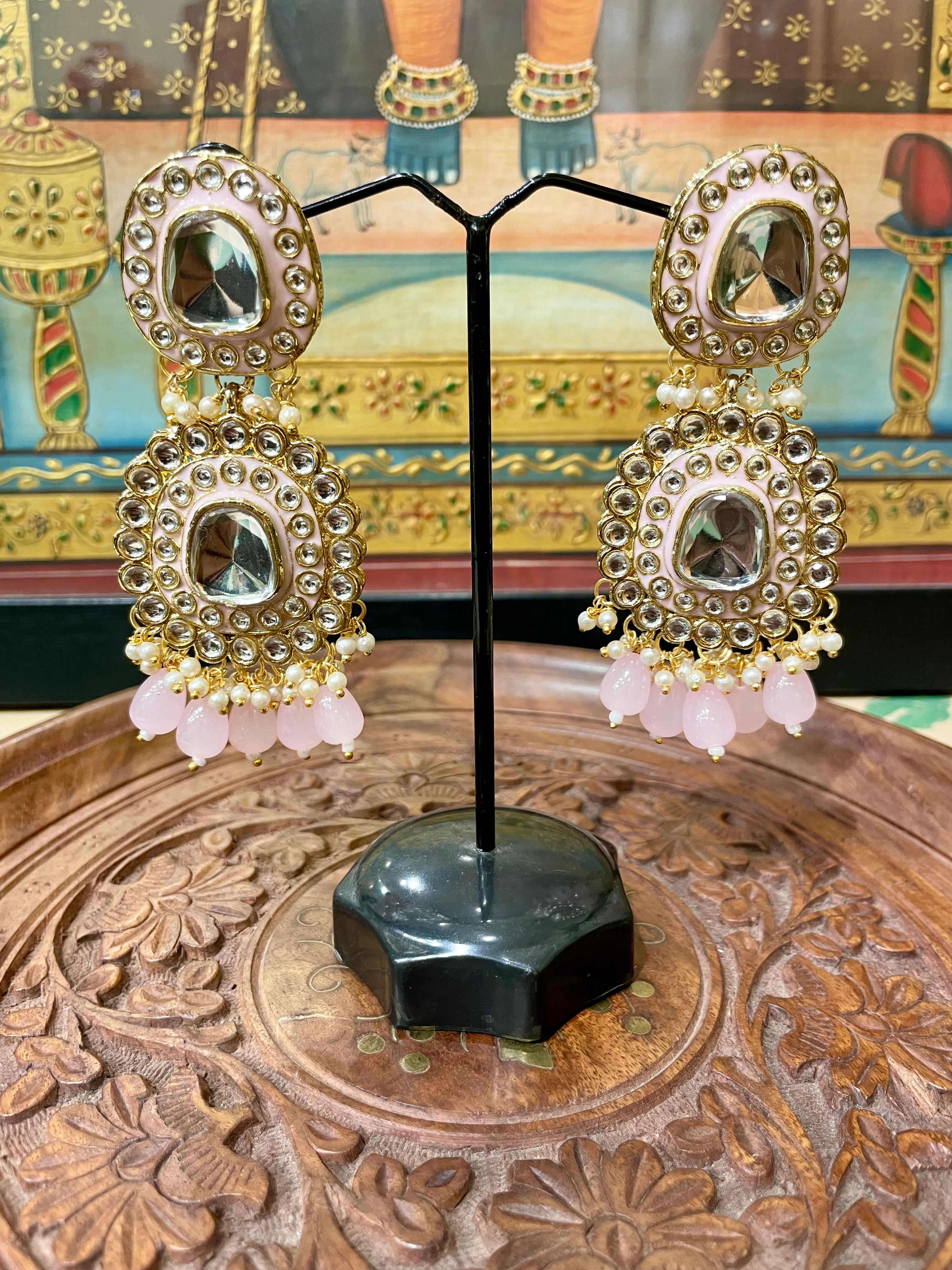 SOFT PINK POLKI KUNDAN BRIDAL EARRINGS