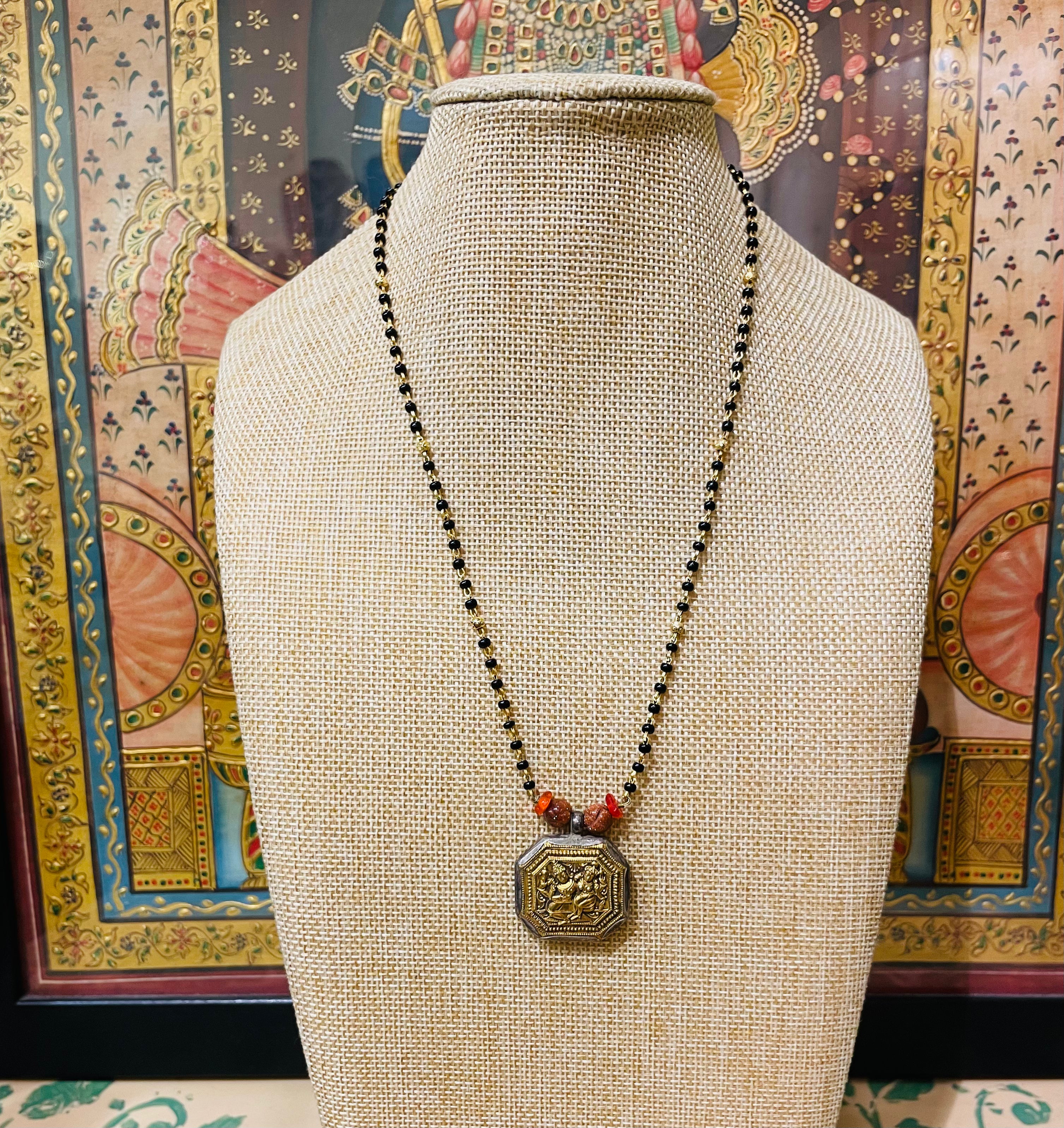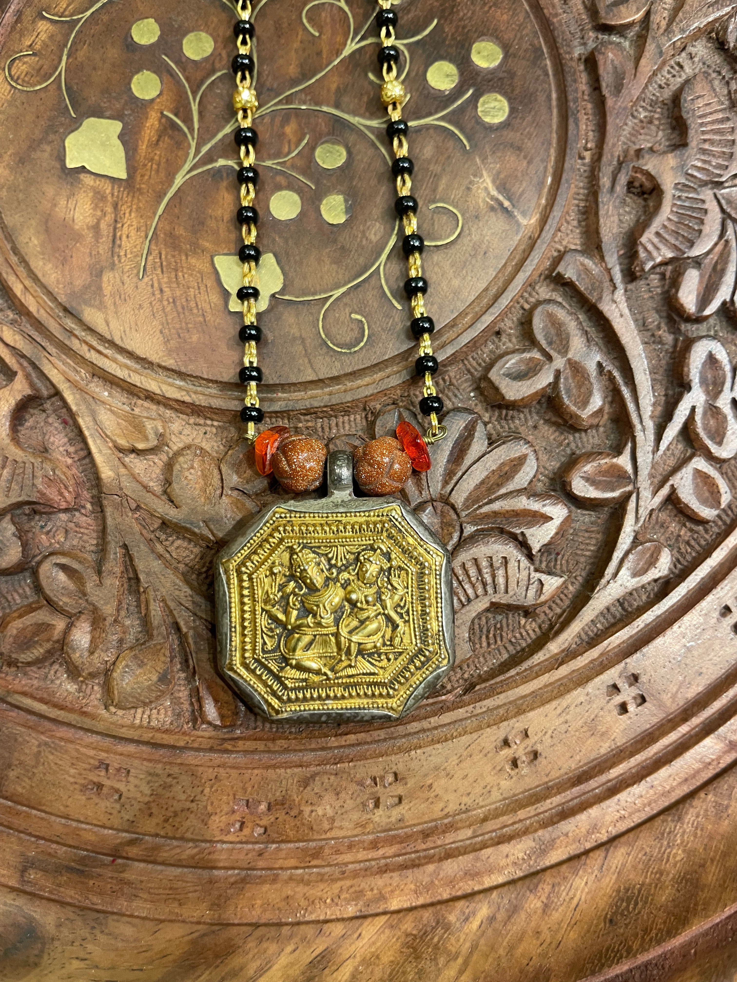 GOLD PATRA ANTIQUE TRIBAL ART MANGALSUTRA SEMI PRECIOUS NECKLACE