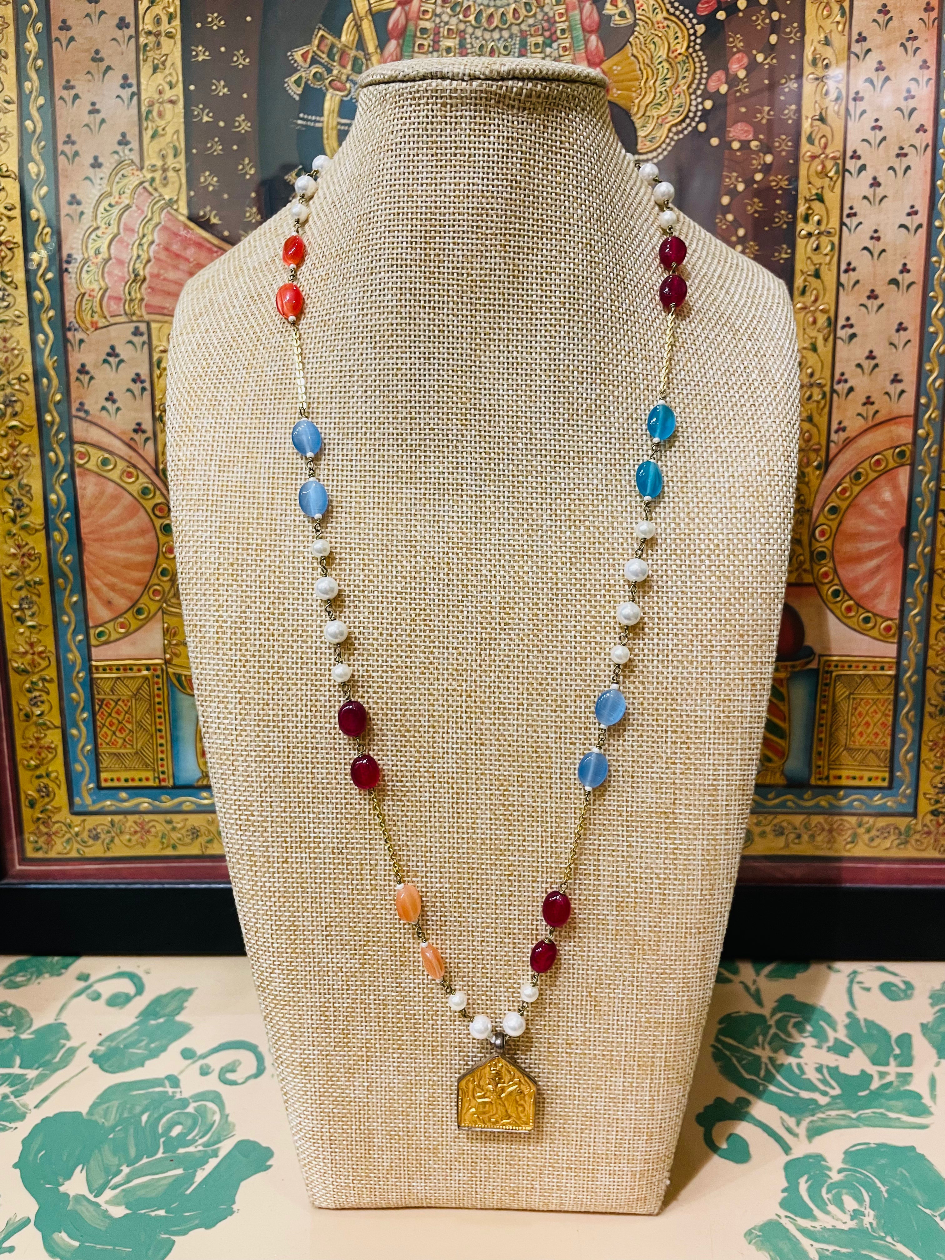 GOLD PATRA ANTIQUE TRIBAL ART SEMI PRECIOUS NECKLACE