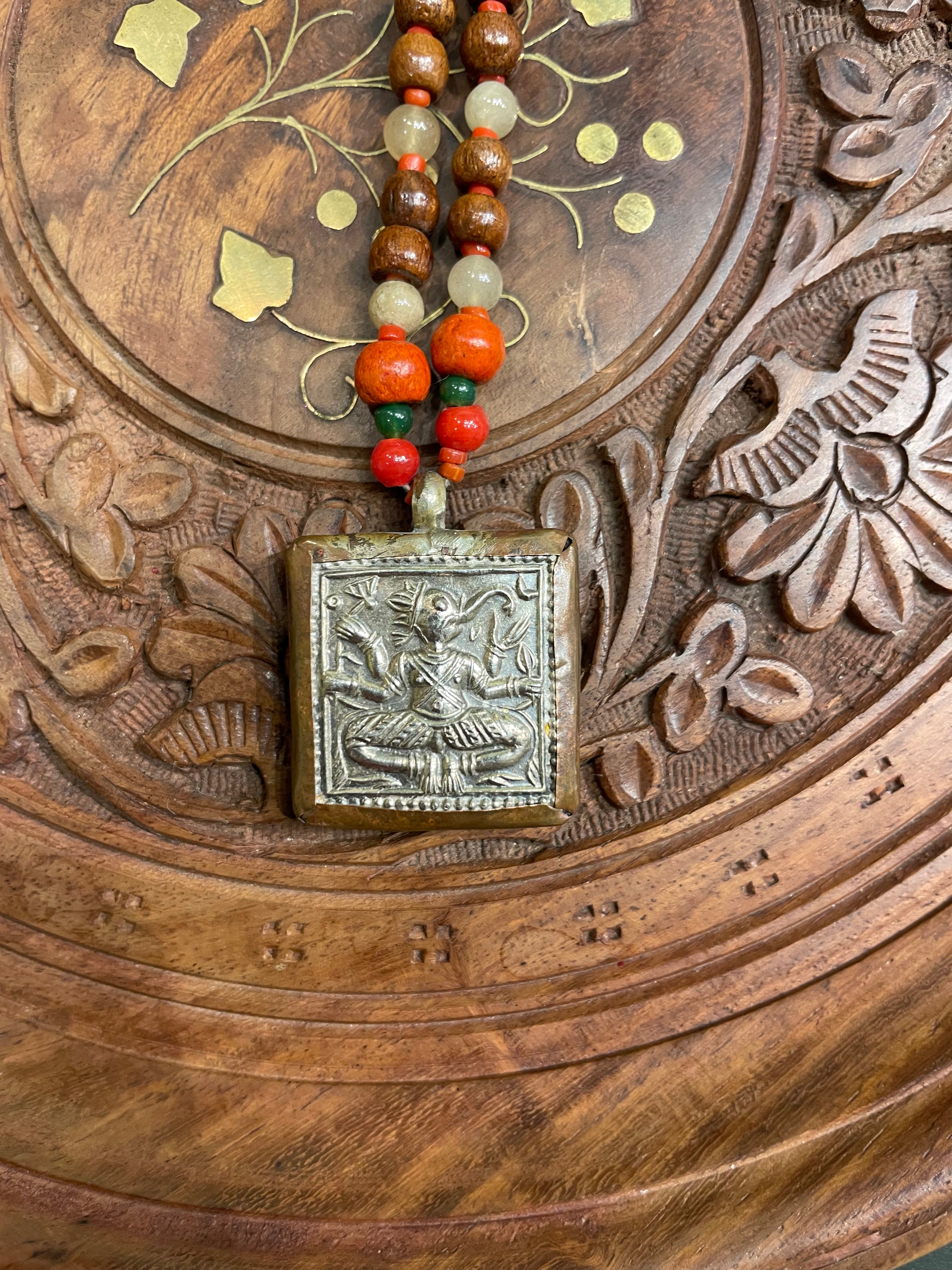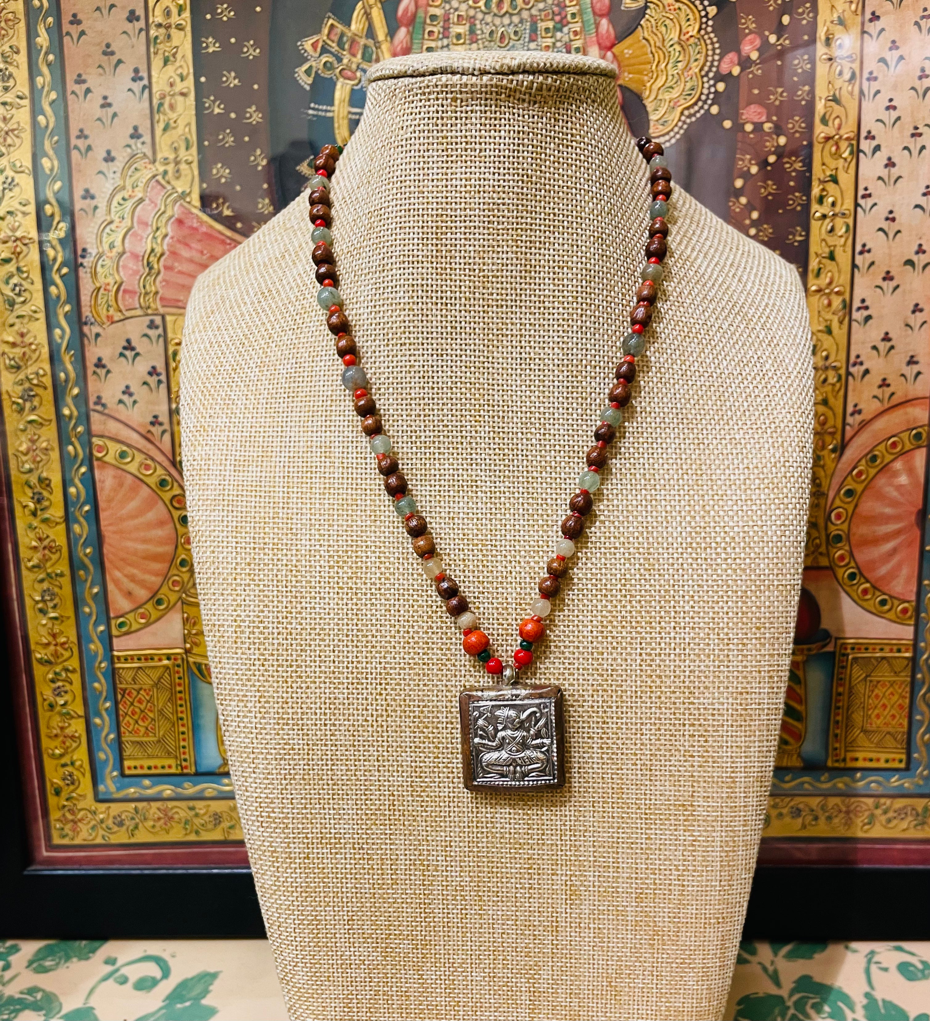 SILVER PATRA TRIBAL ART ANTIQUE TULSI BEADS NECKLACE