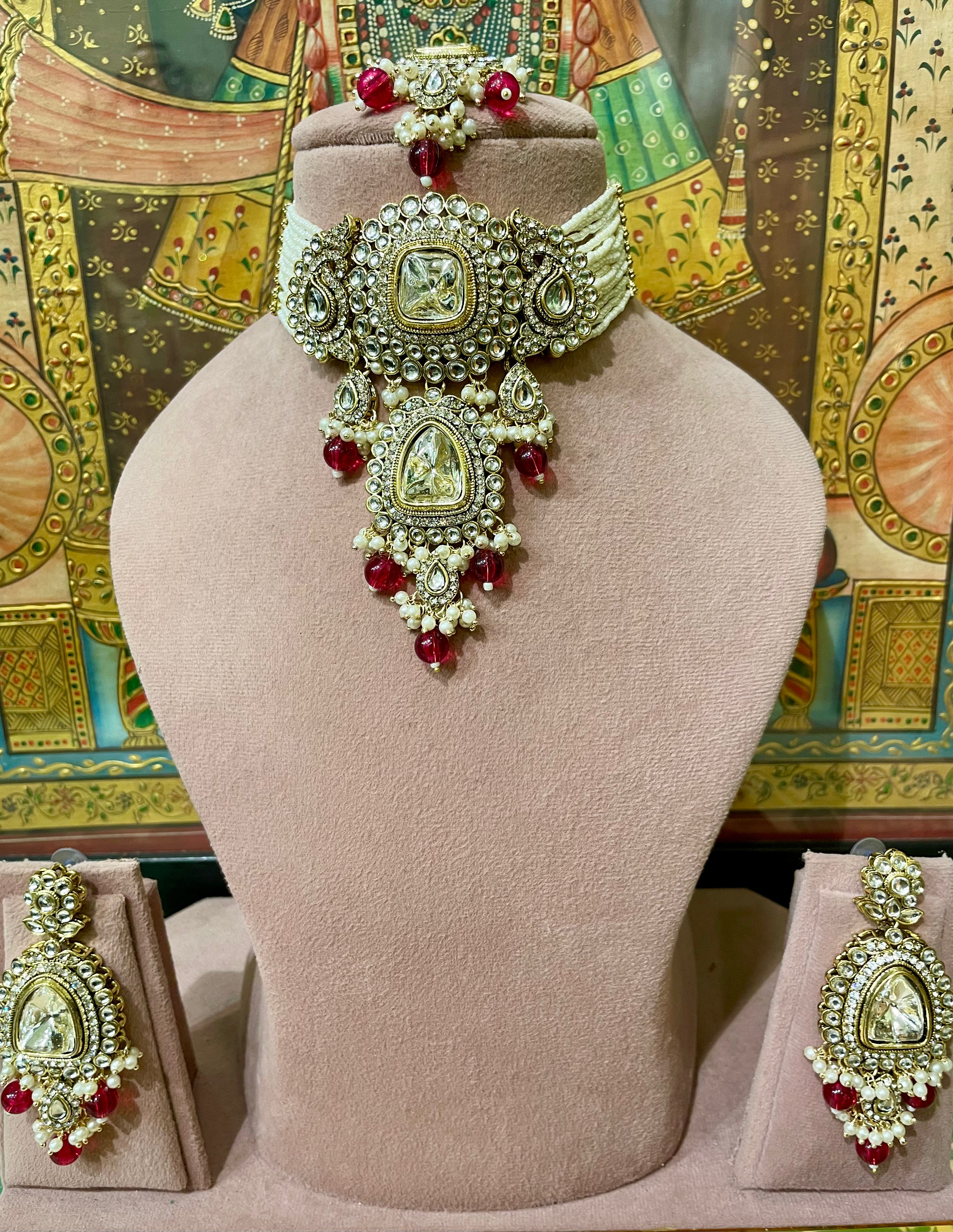 DARK PINK NIZAM KUNDAN PEARL CHOKER SET