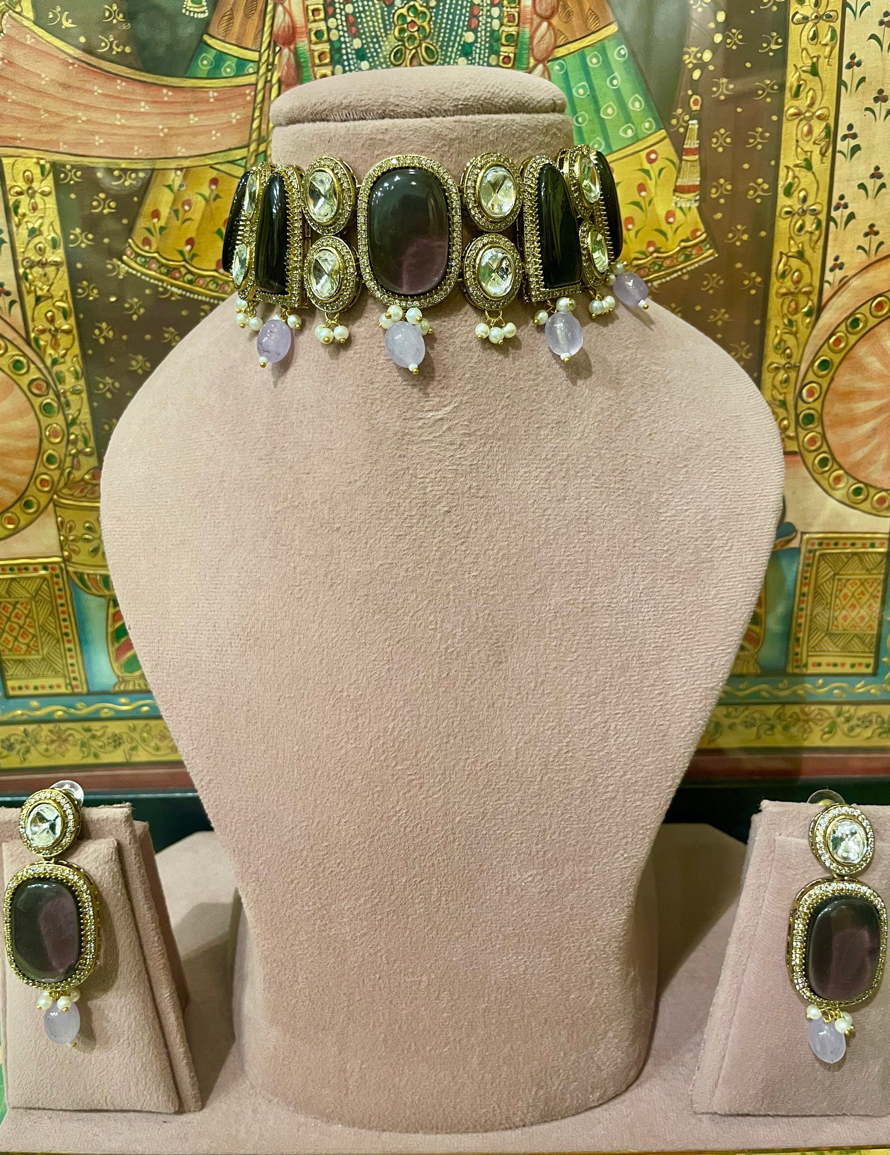DARK PURPLE MONALISA STONES KUNDAN DESIGNER CHOKER SET