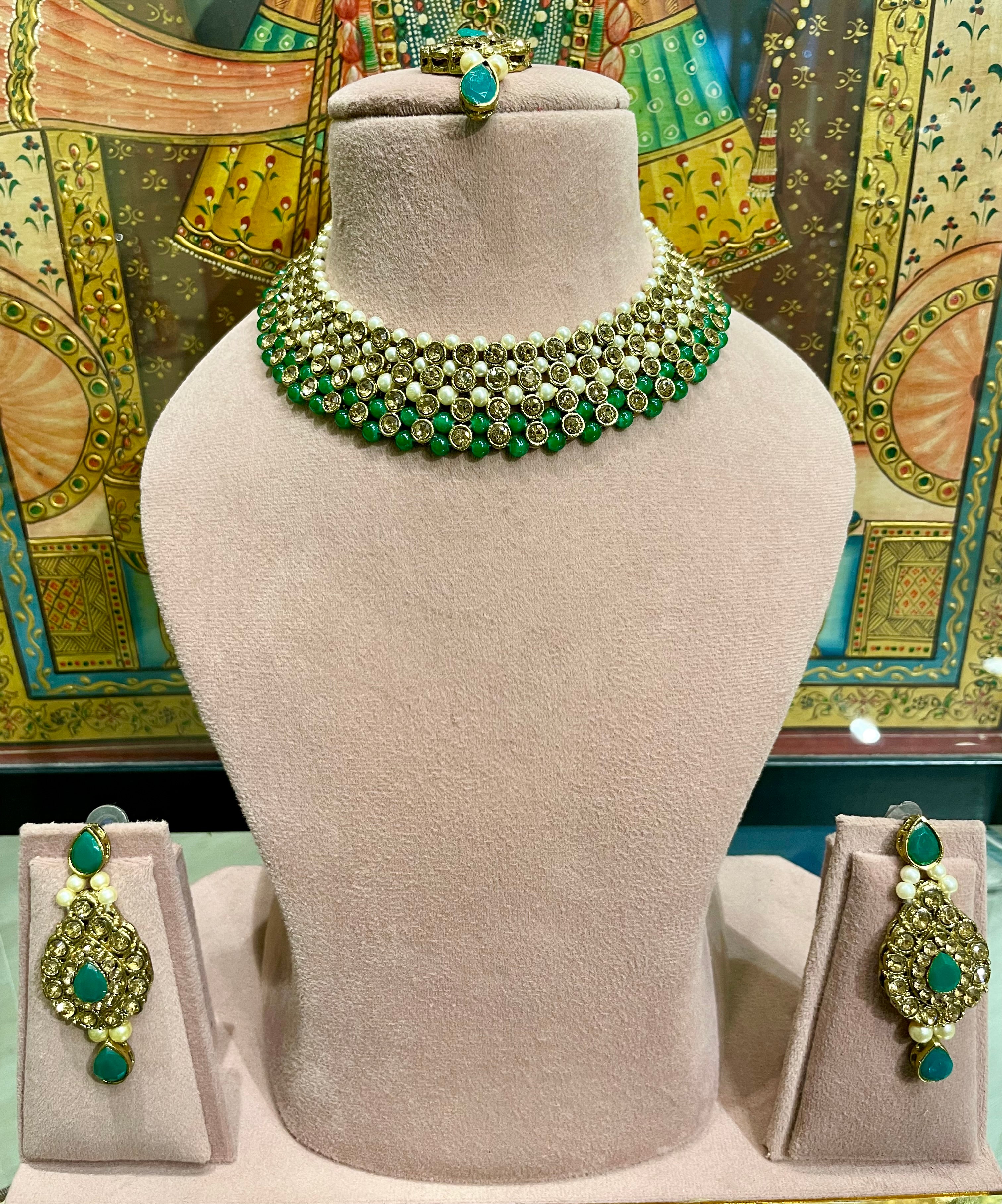 GOLD TONED ZIRCON NECKLACE SET (GREEN)