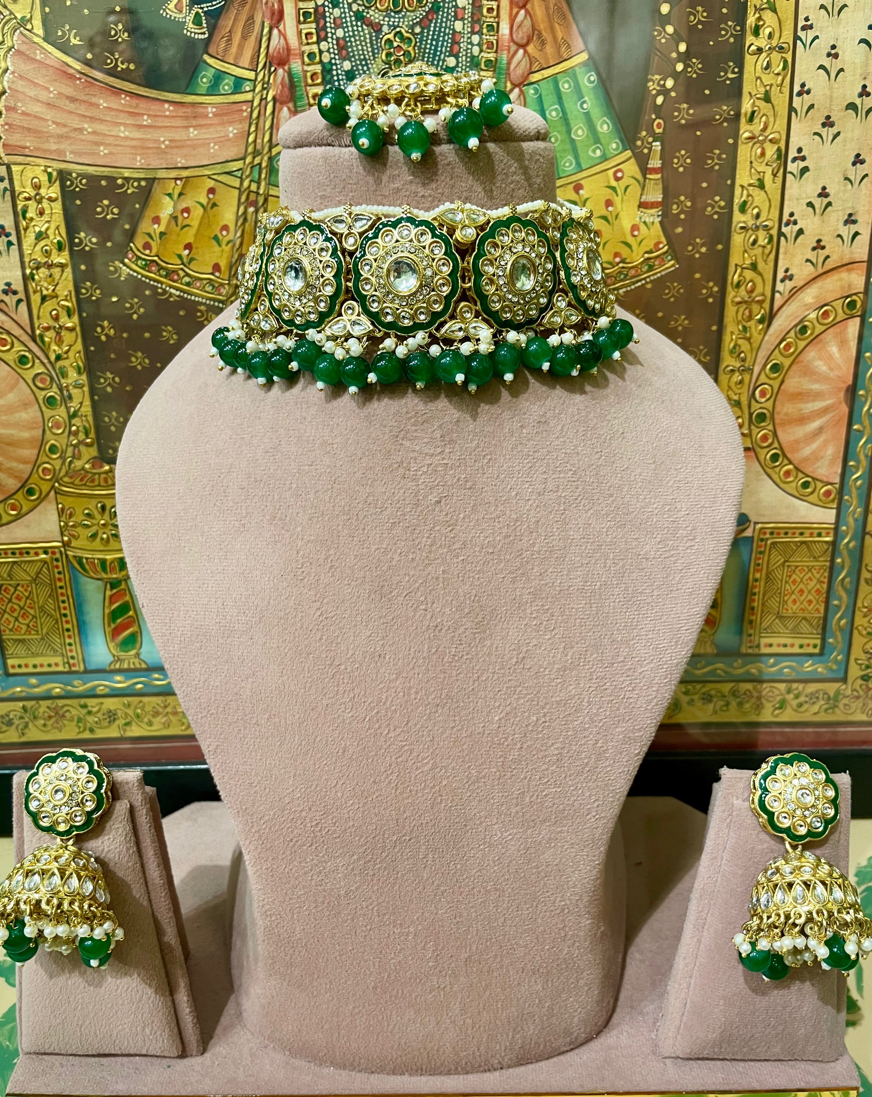 GREEN MUGHAL DESIGN KUNDAN CHOKER SET