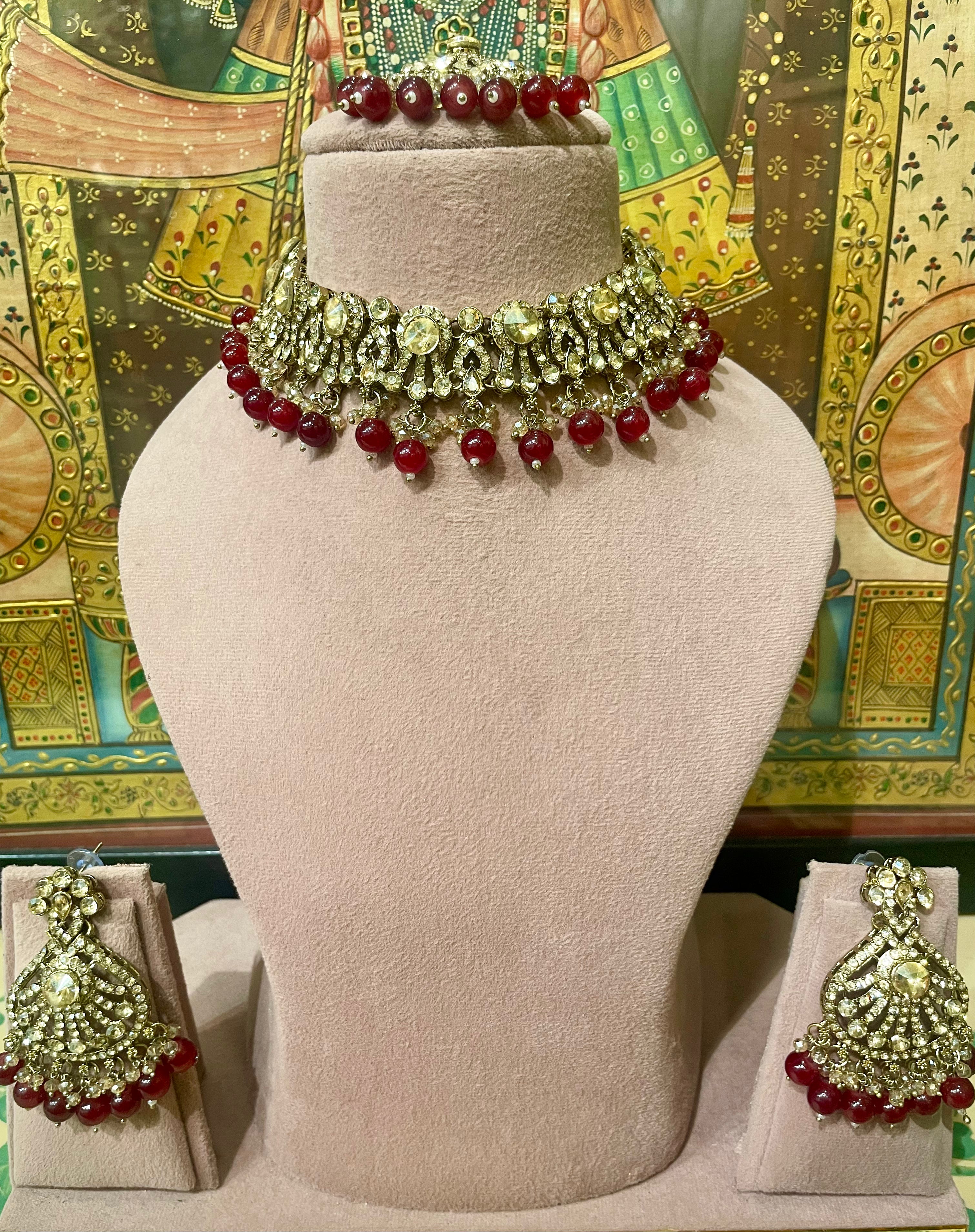 MAROON GOLD TONED ETHNIC NECKLACE SET