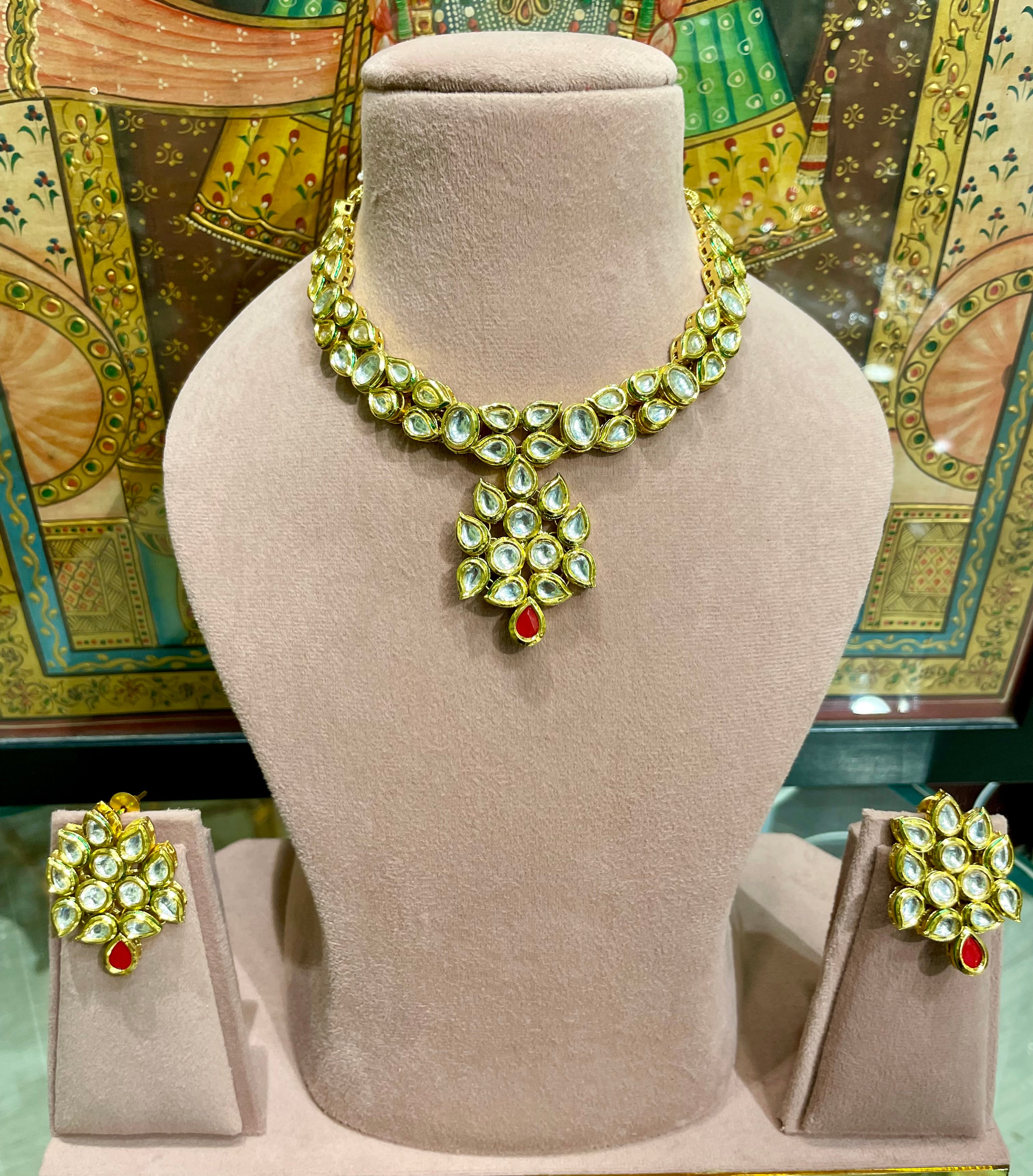 MEENAKARI KUNDAN PENDANT NECKLACE SET (RED)
