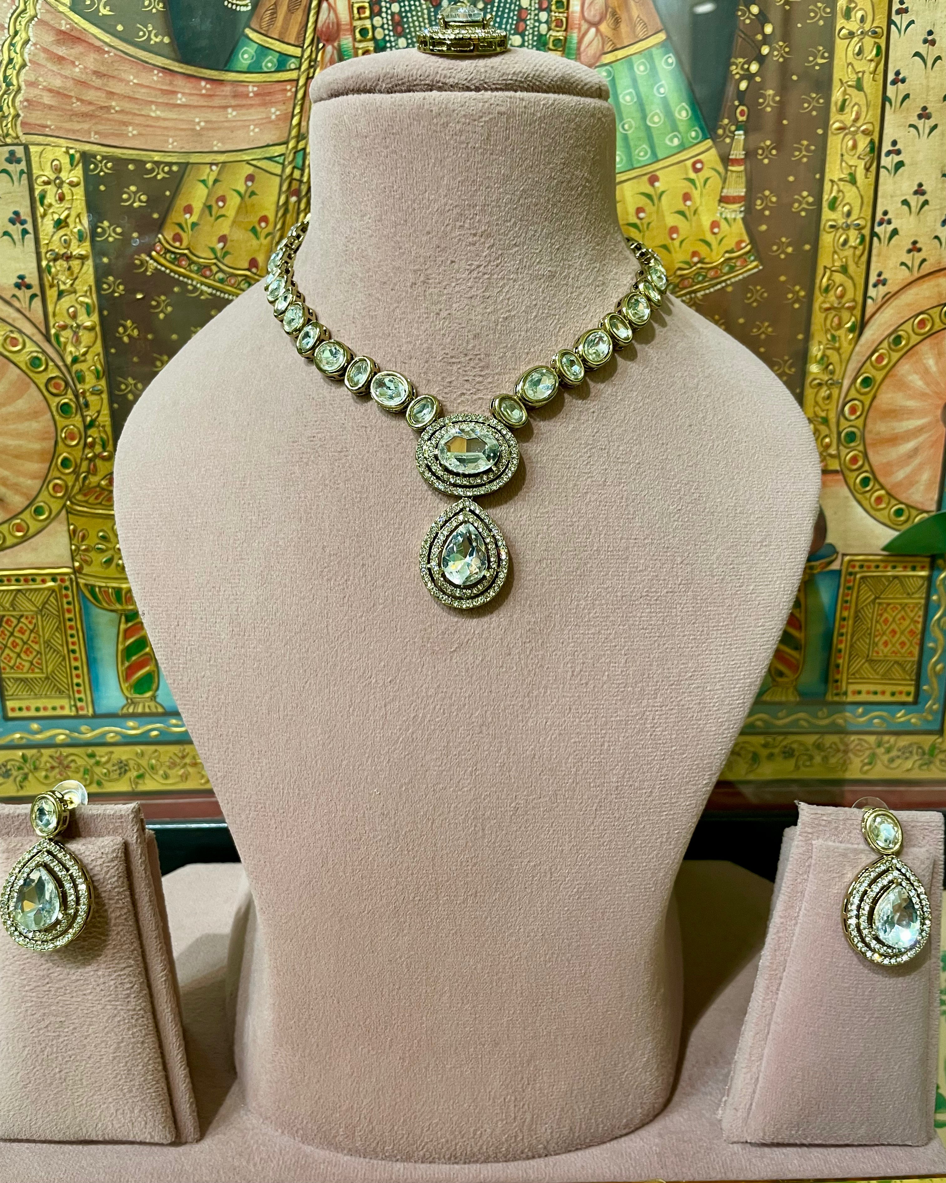 NEUTRAL KUNDAN MOISSANITE PENDANT NECKLACE SET