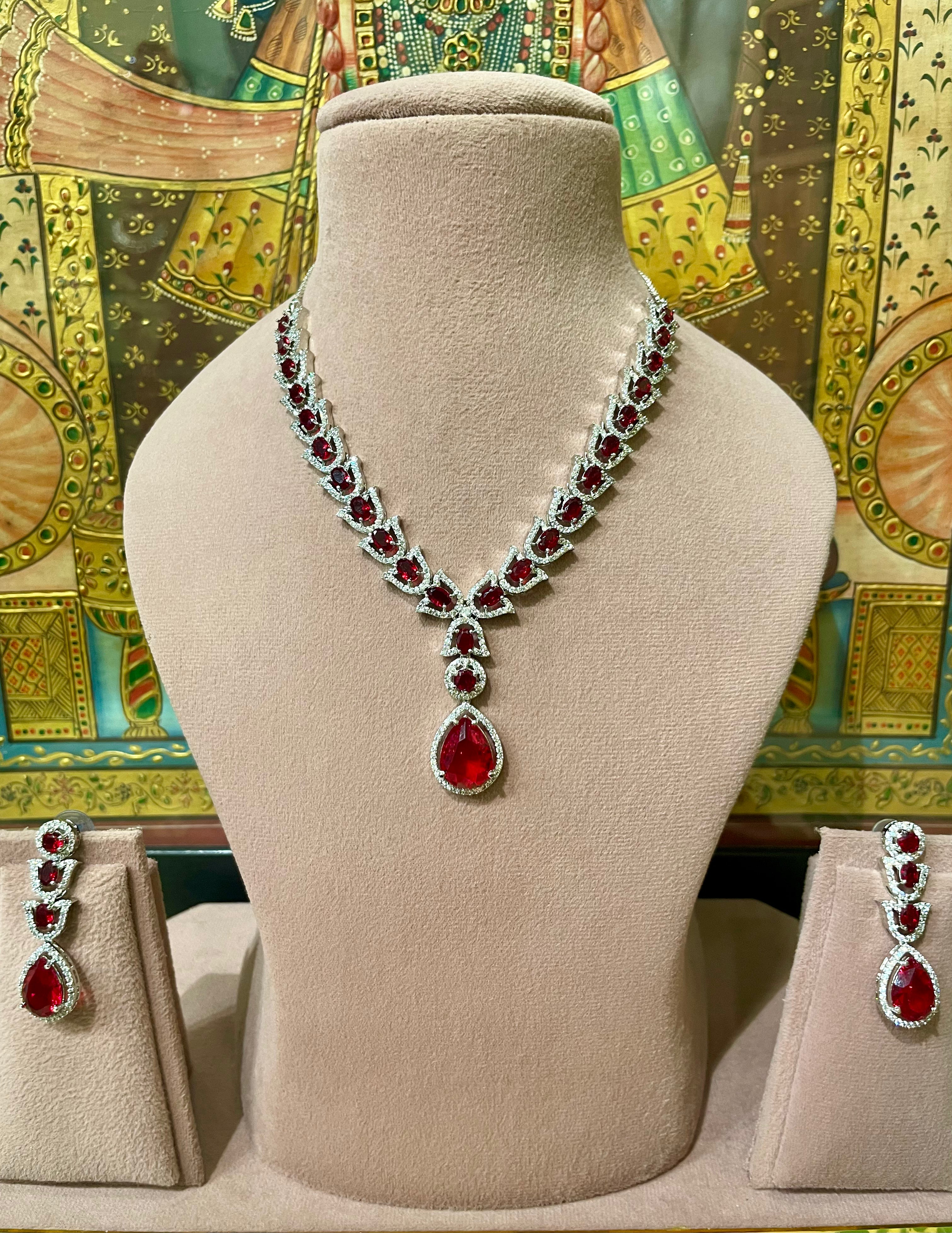 RUBY RED AMERICAN DIAMOND (AD) DESIGNER NECKLACE SET