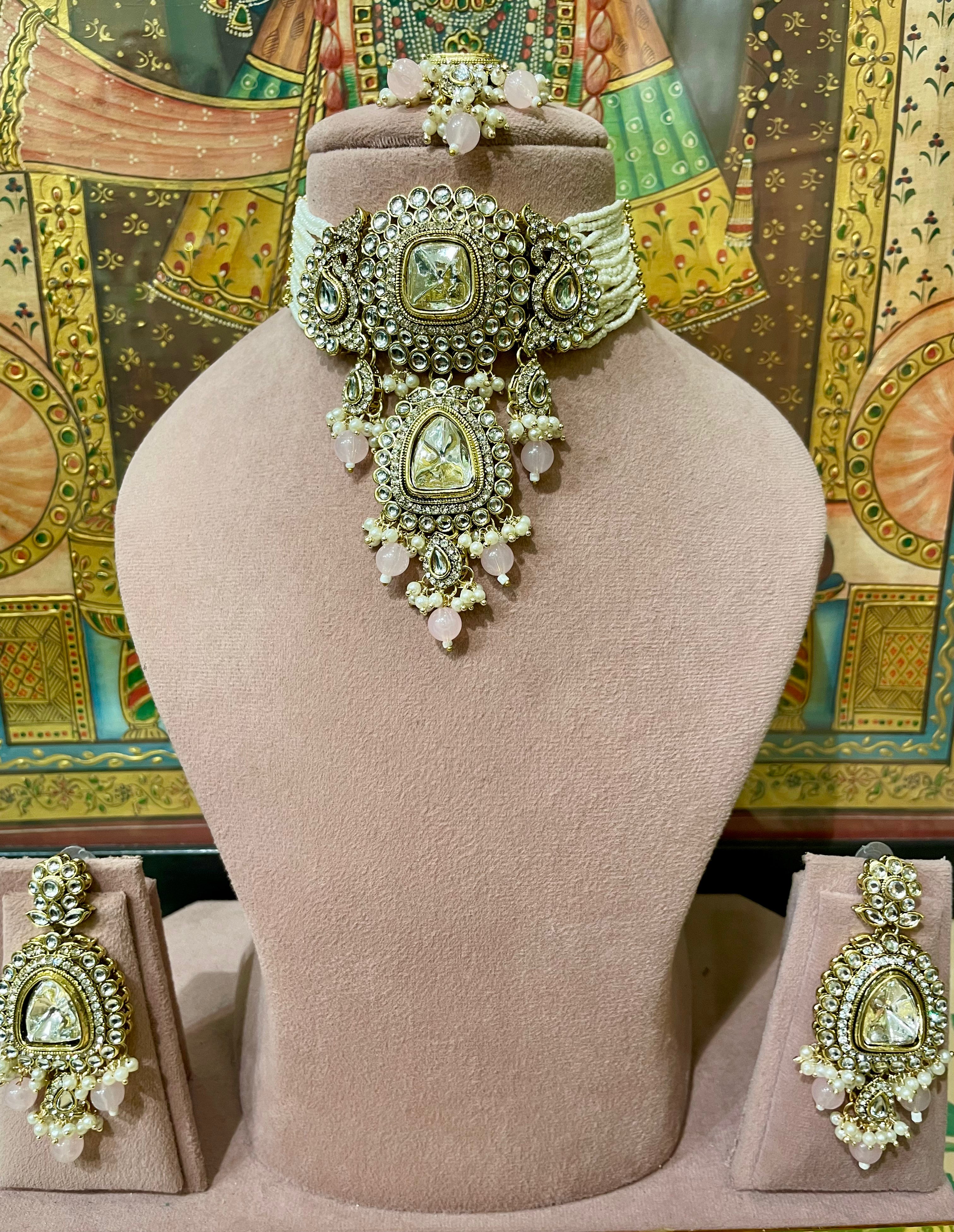 SOFT PINK NIZAM KUNDAN PEARL CHOKER SET