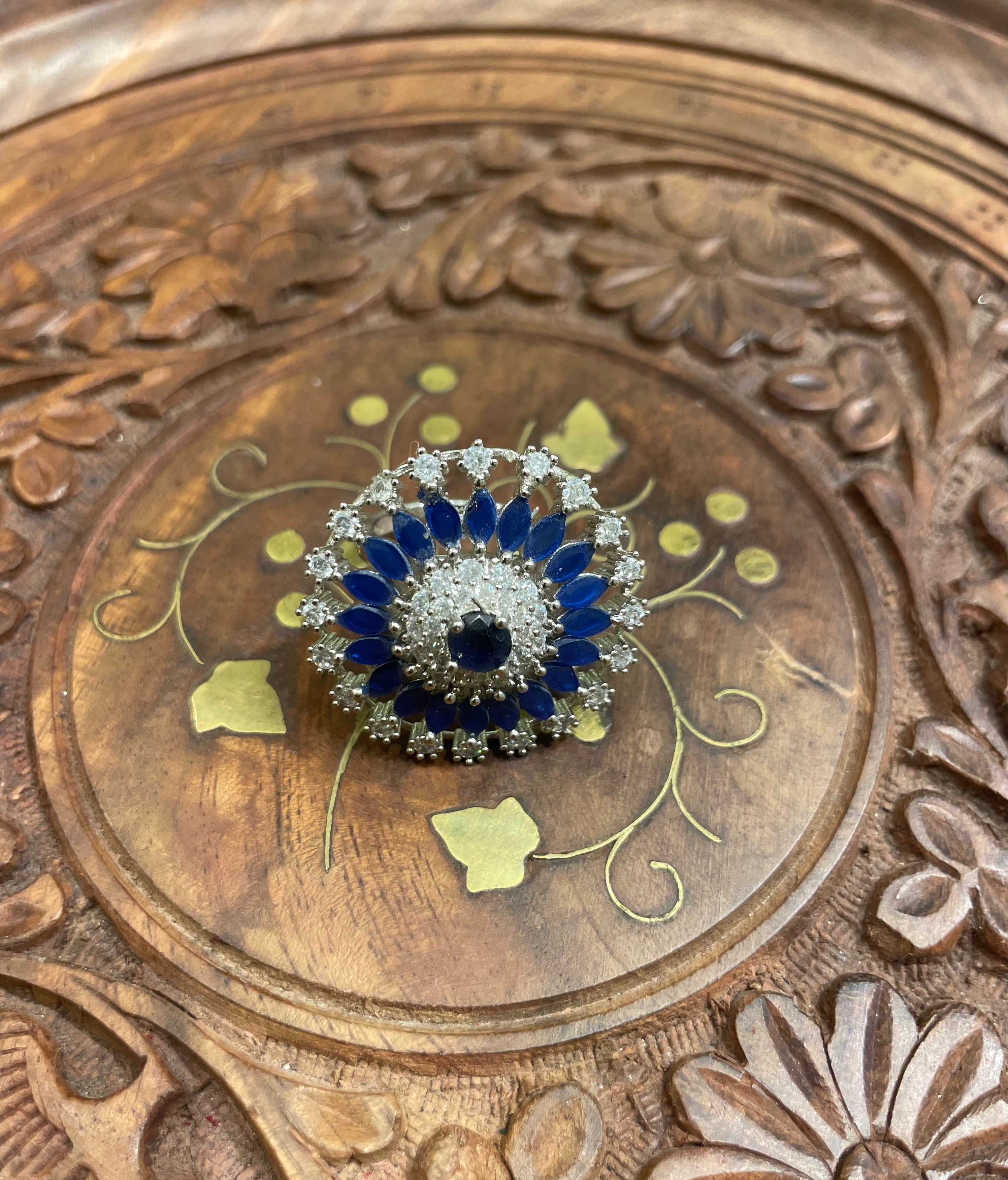 BLUE CRYSTAL AMERICAN DIAMOND (AD) COCKTAIL PARTY RING