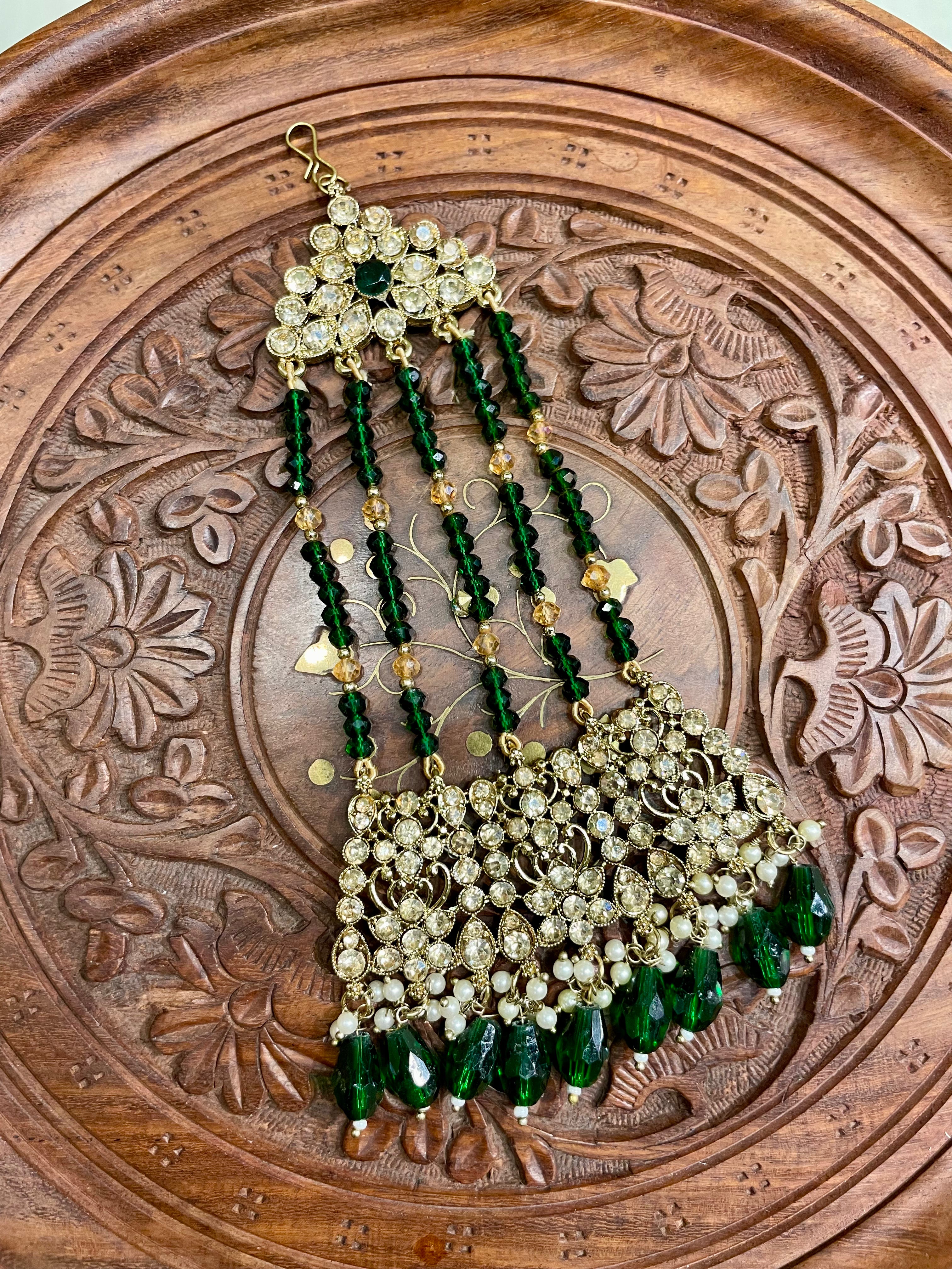 DARK GREEN GOLD TONED BRIDAL PASSA