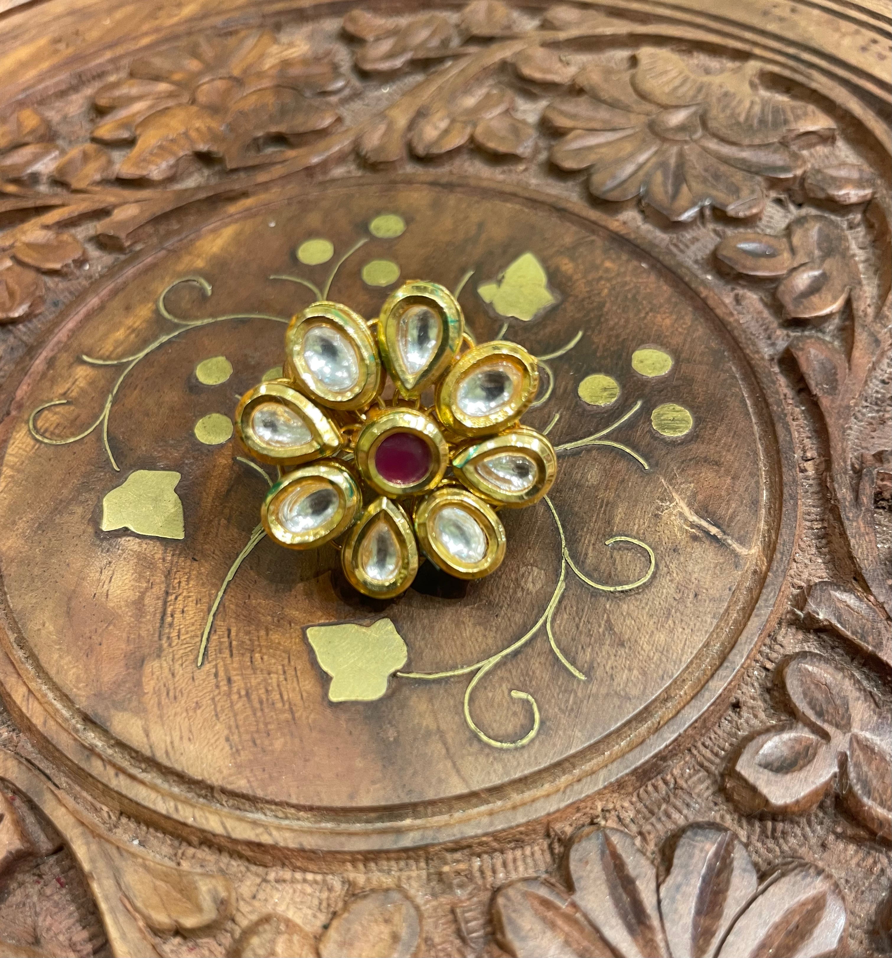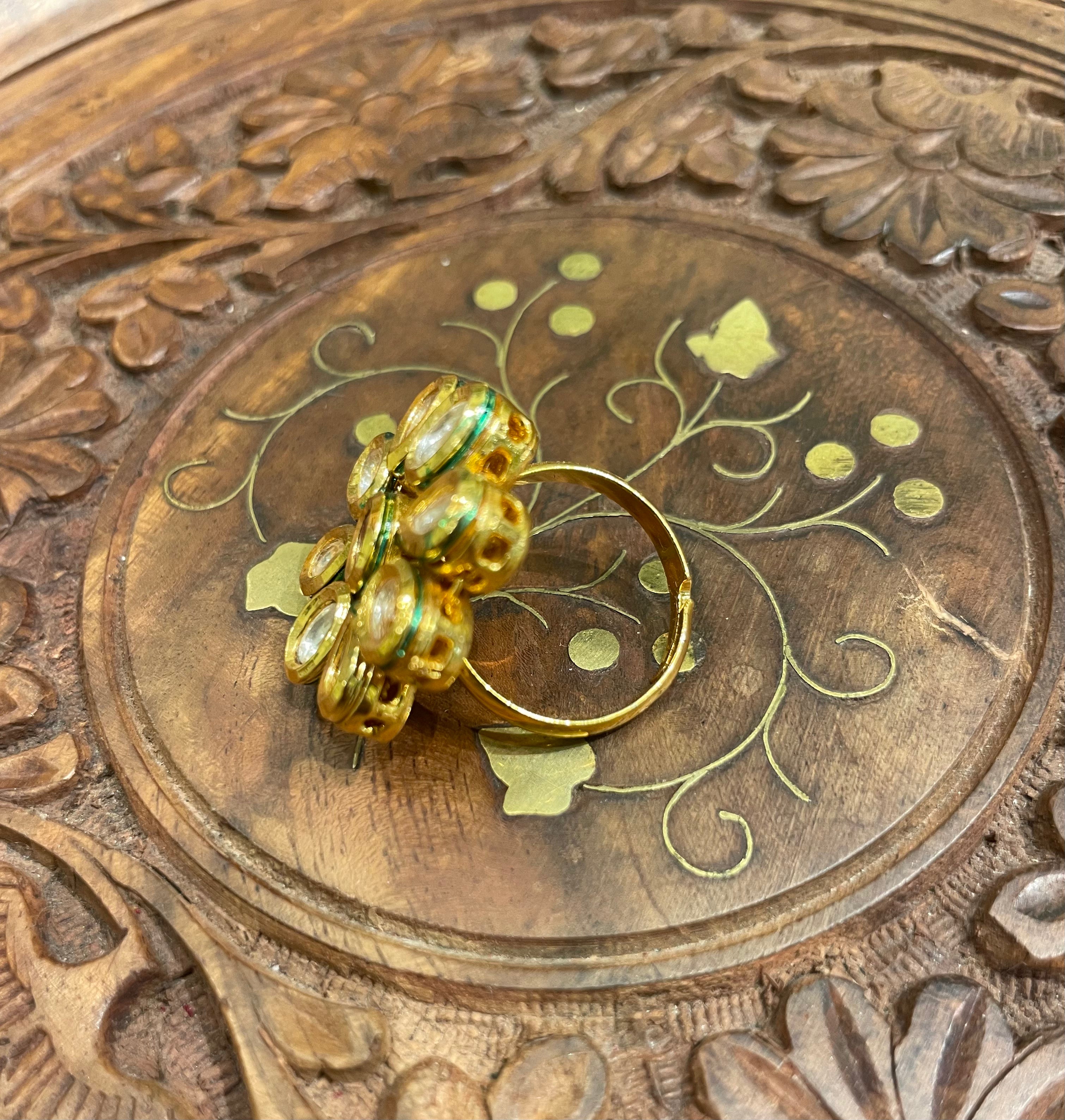 GOLD TONED MEENA KUNDAN COCKTAIL PARTY RING (RED)
