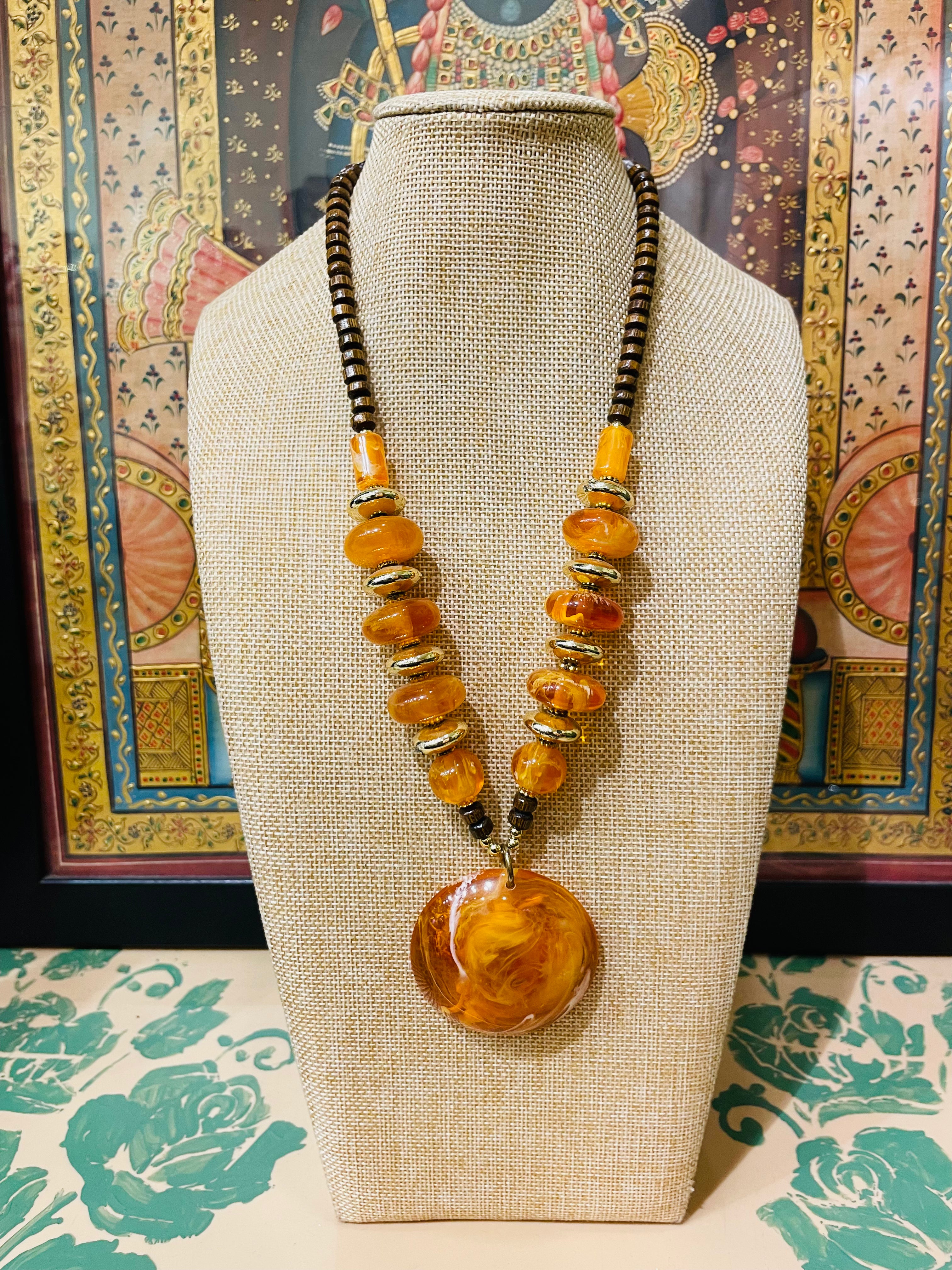 AMBER BEADS WITH PENDANT DESIGNER SEMI PRECIOUS NECKLACE