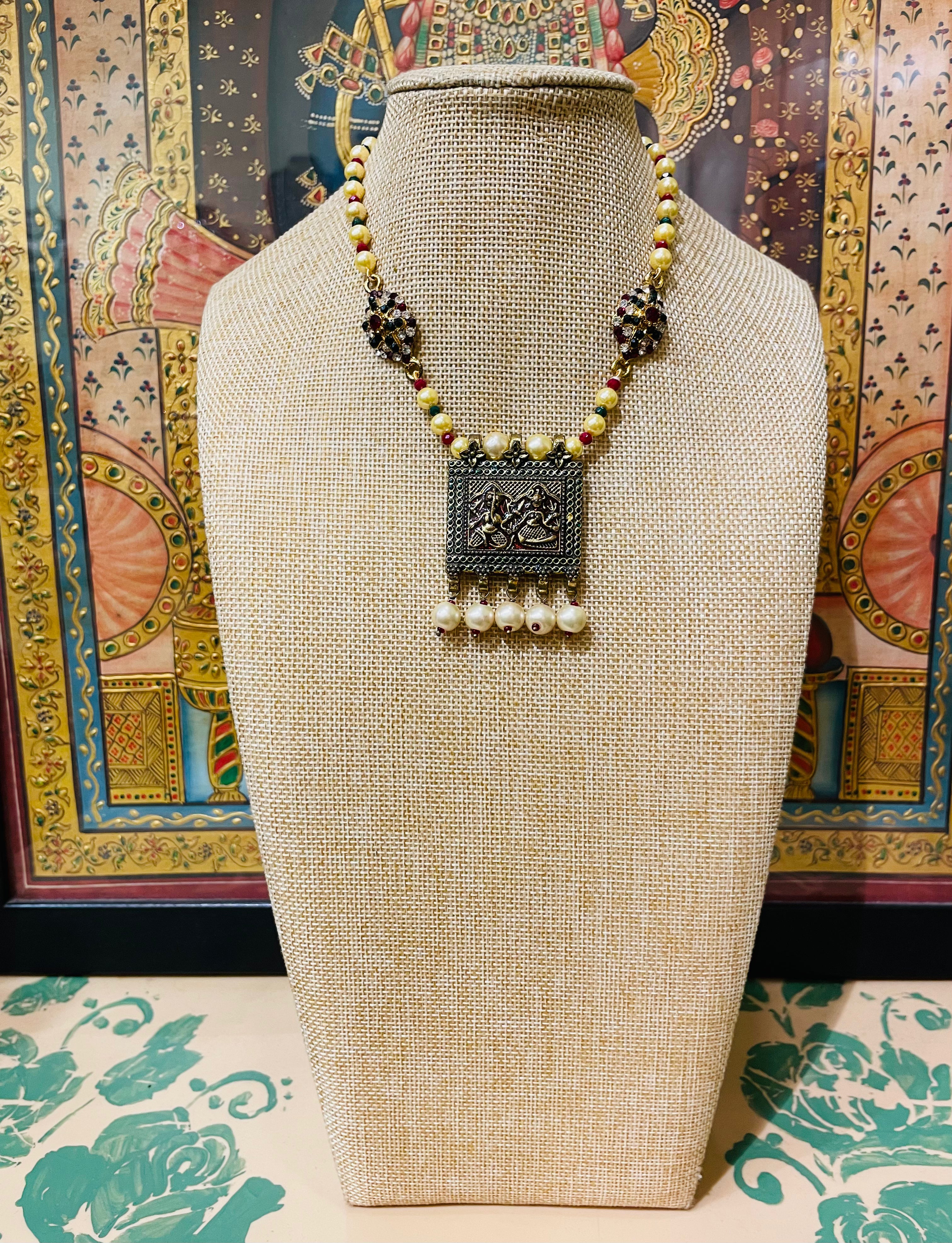 ANTIQUE TEMPLE DESIGN PEARL PENDANT NECKLACE