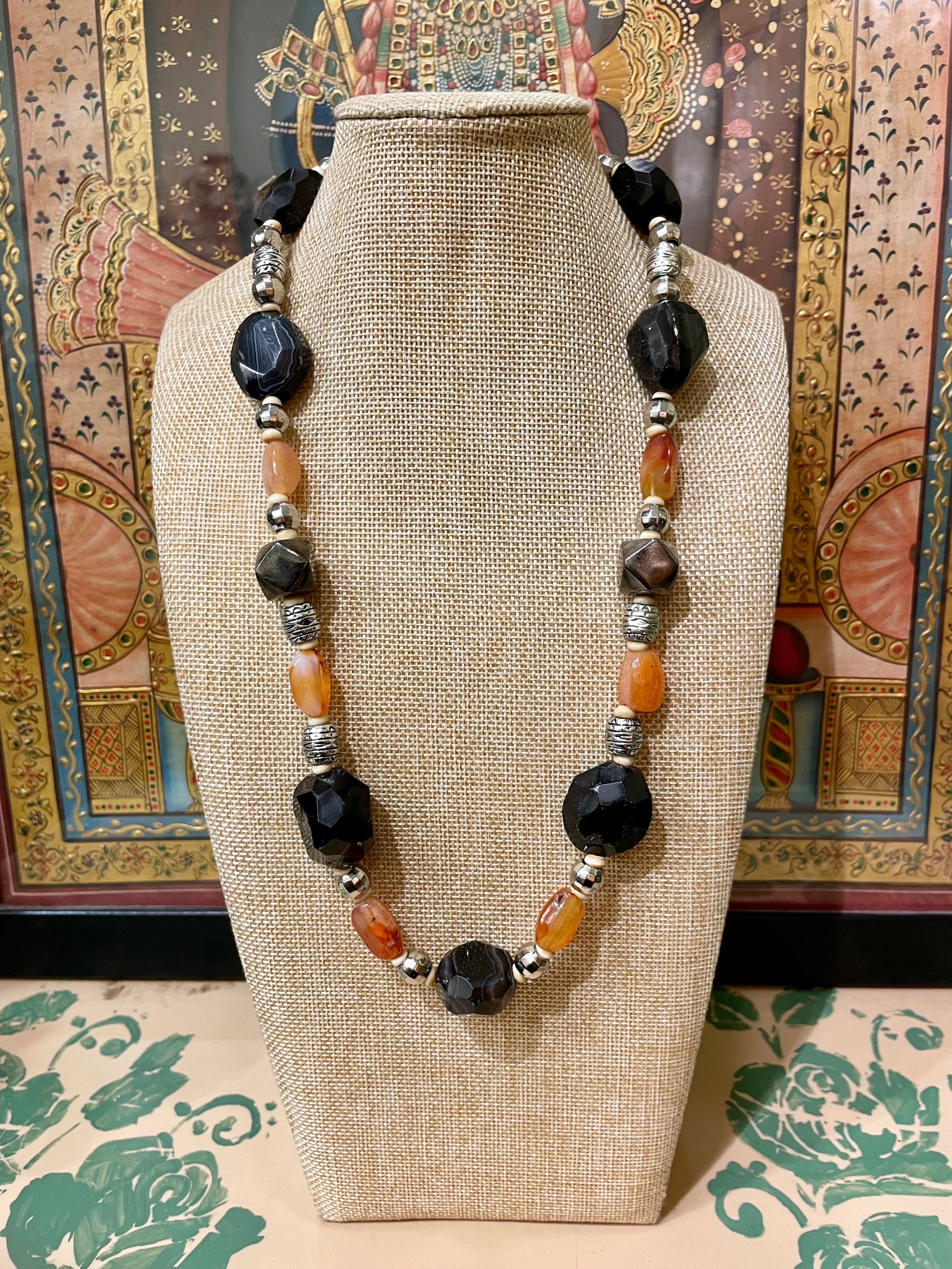 BLACK ONYX & CORNELIAN STONE DESIGNER NECKLACE