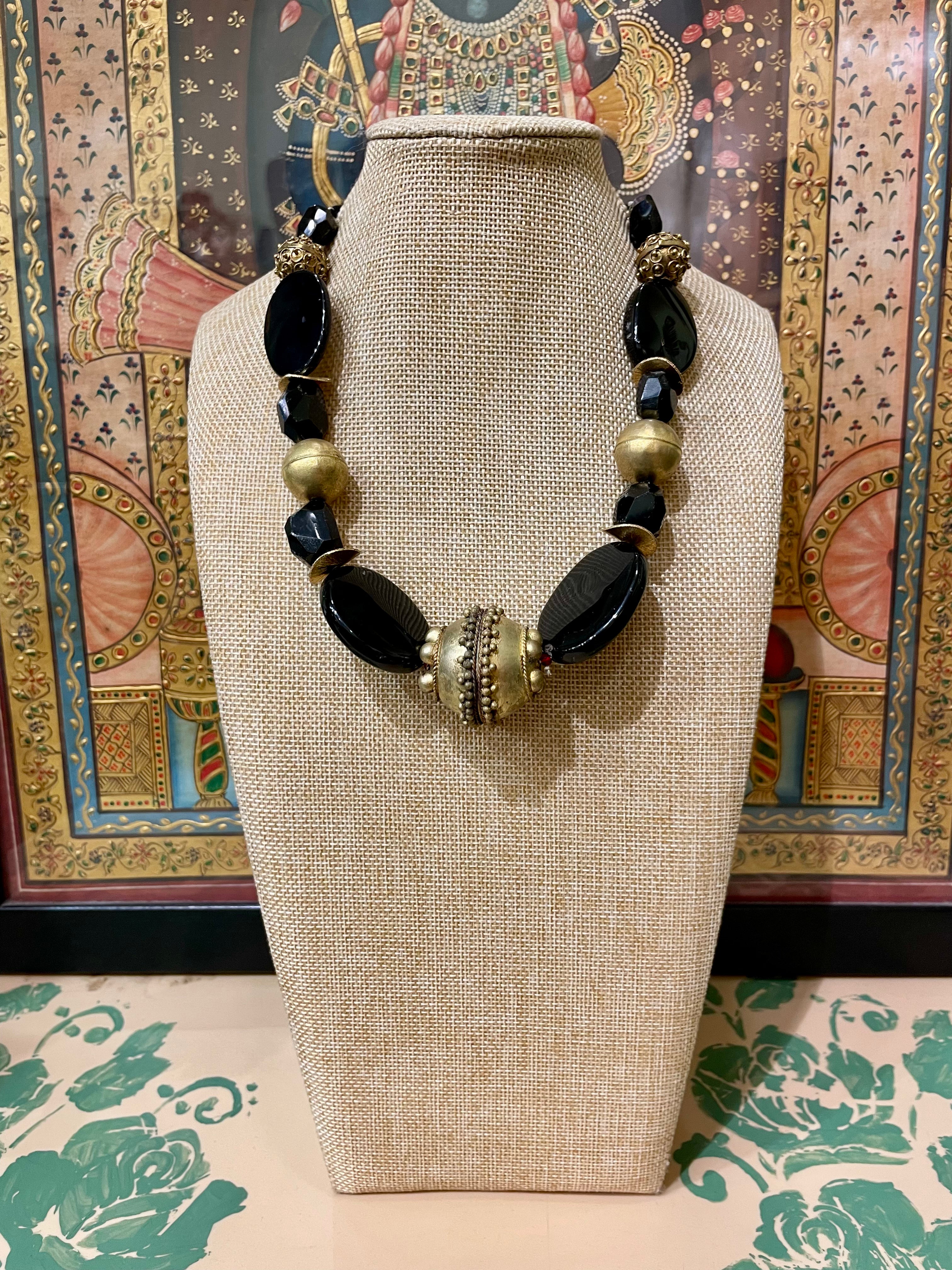 BLACK STONE GOLD SPACERS DESIGNER STRING NECKLACE