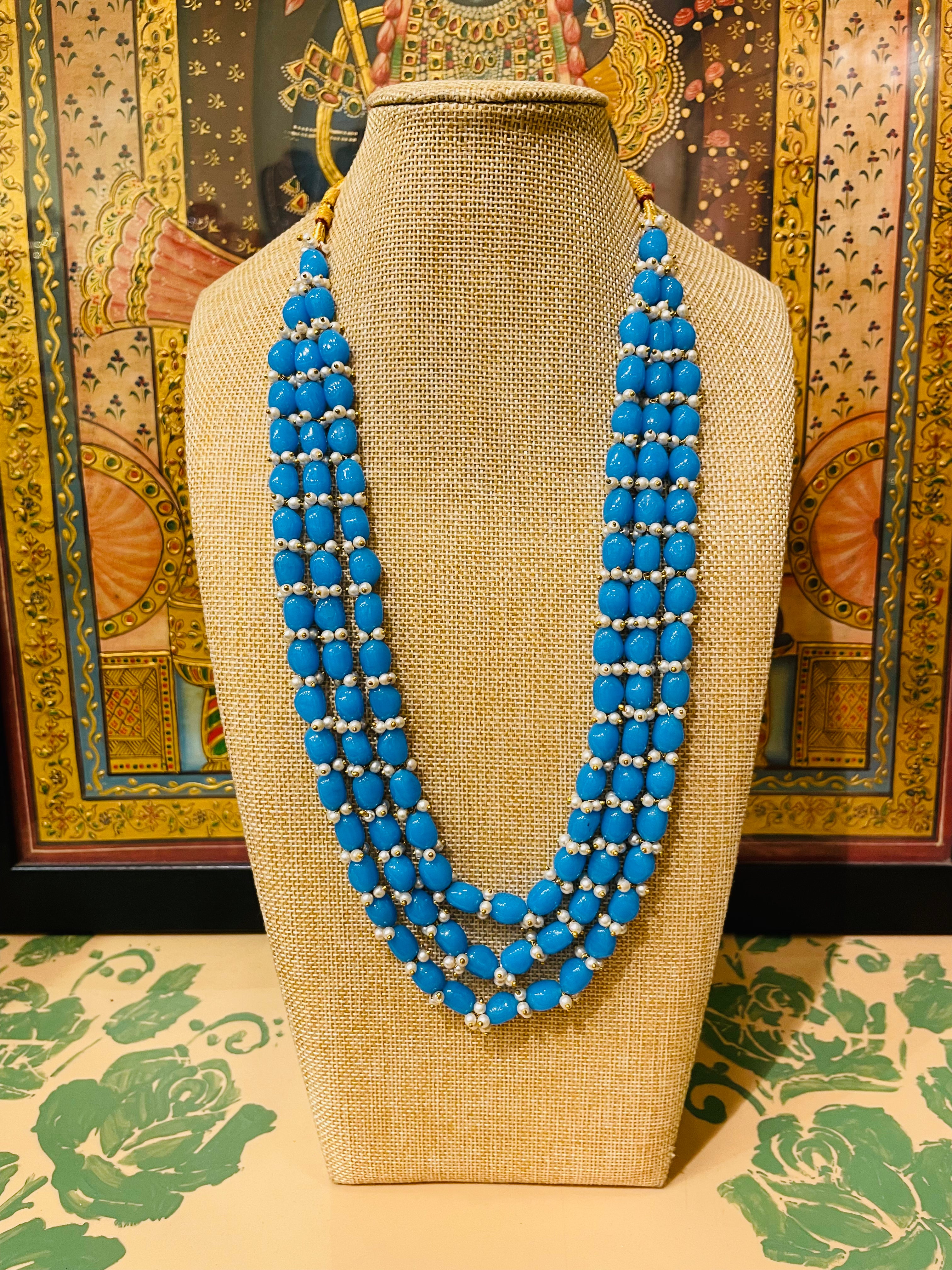 BLUE SEMI PRECIOUS TRIPLE STRING NECKLACE