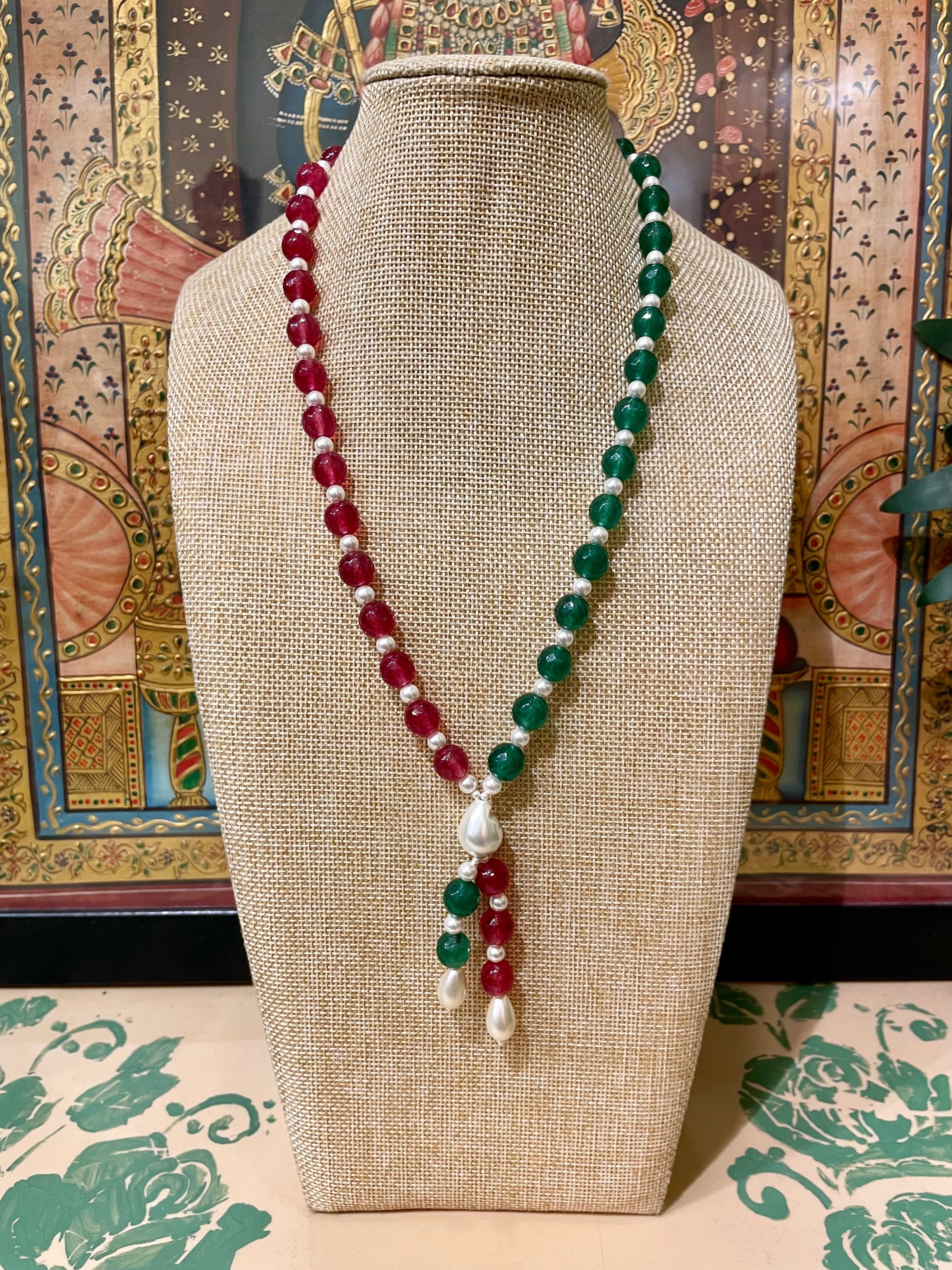DARK PINK & GREEN FLUORITE SEMI PRECIOUS STONES DESIGNER NECKLACE