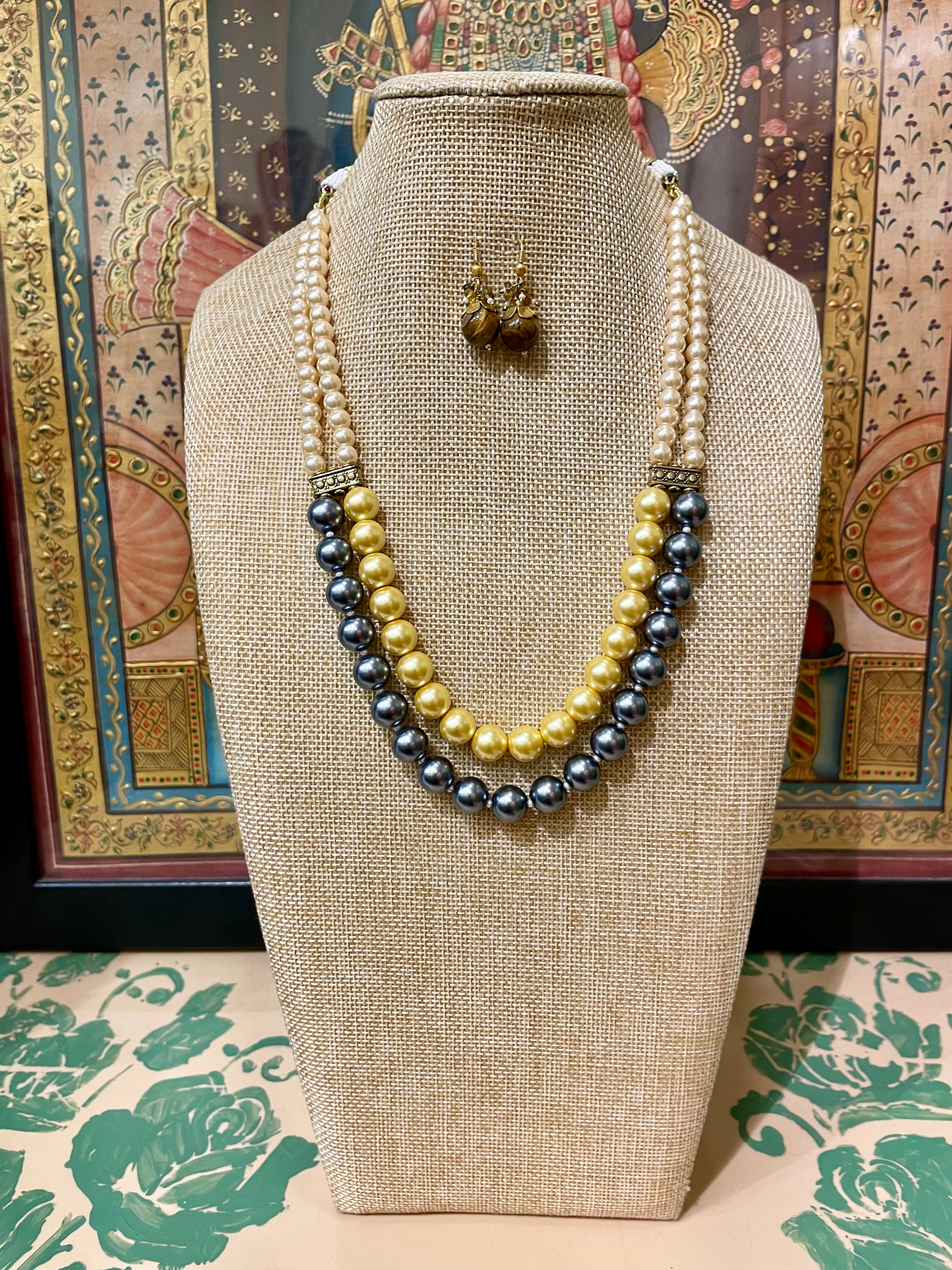 GOLDEN & GREY PEARL DESIGNER NECKLACE STRING SET