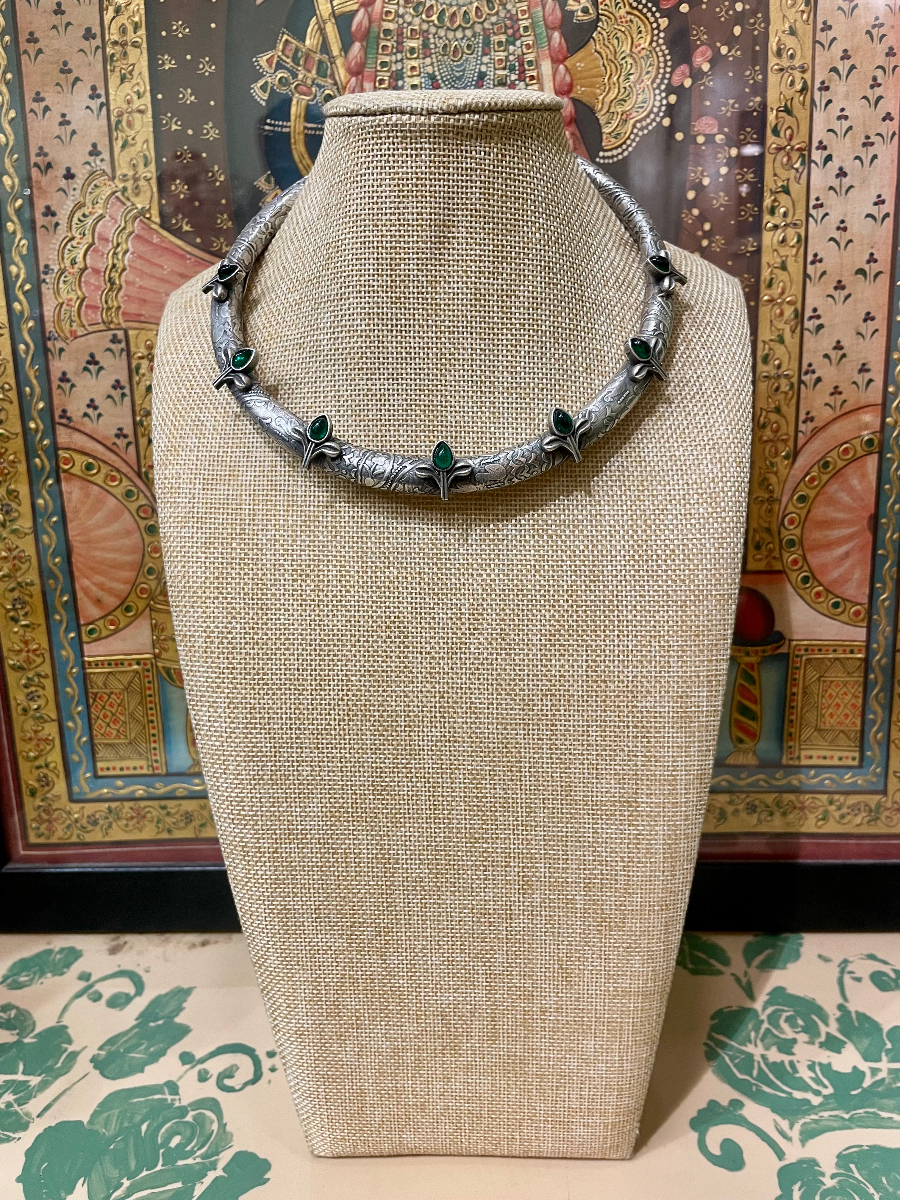 GREEN ONYX STONE DESIGNER SILVER HASLI