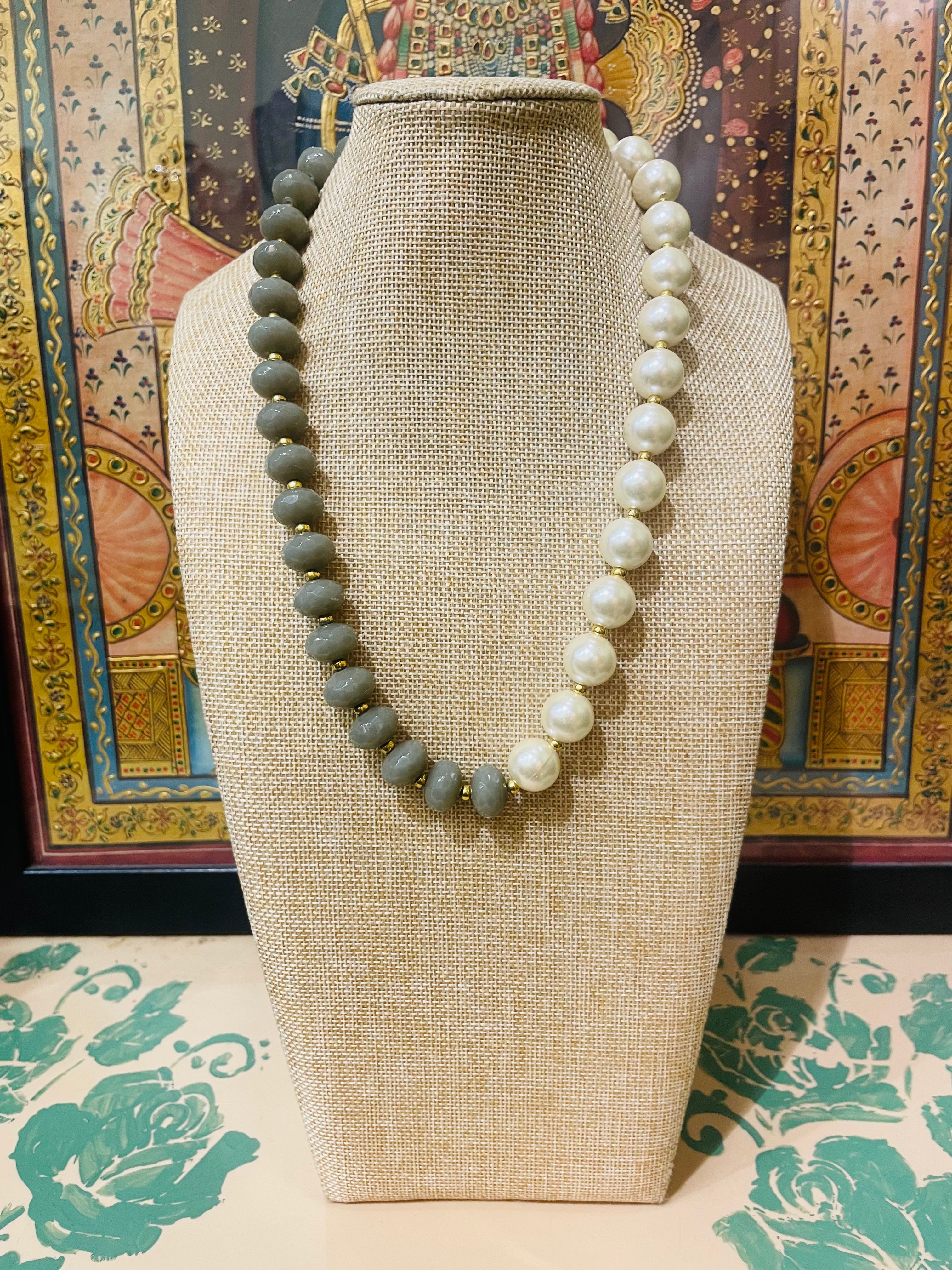 GREY & IVORY WHITE PEARL STRING NECKLACE
